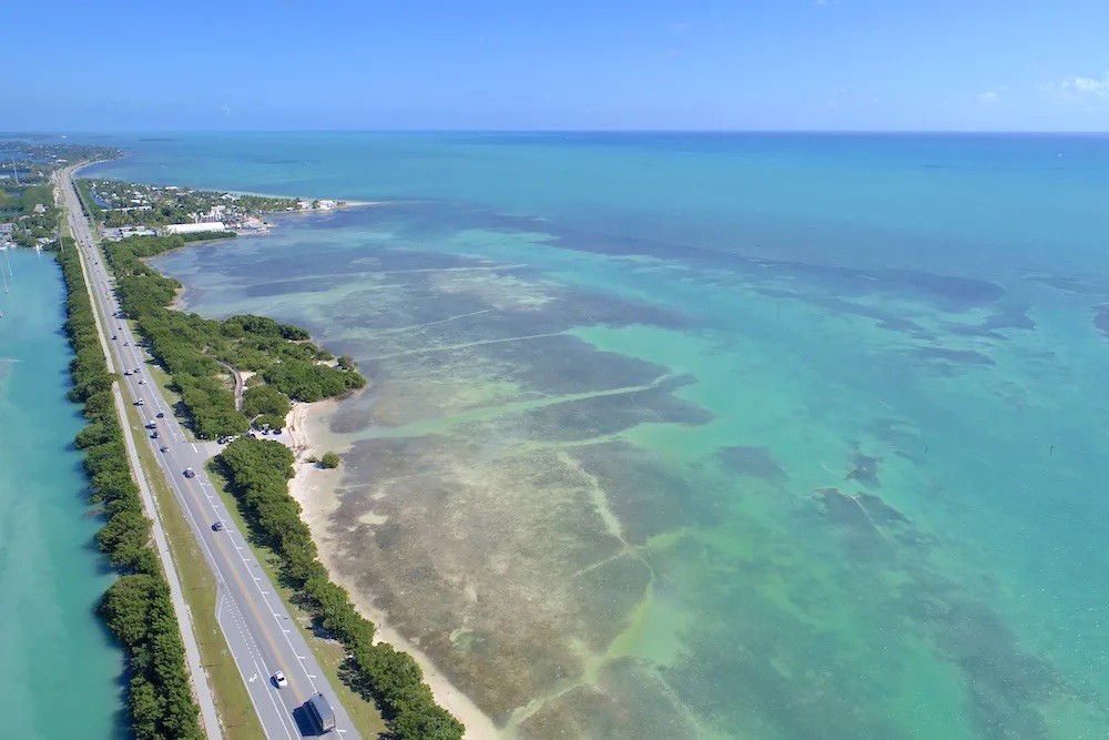 Overseas Highway, Flórida: Esta estrada segue sobre o oceano, conectando as ilhas do sul da Flórida, com vistas deslumbrantes do oceano e da vida marinha que criam uma envolvência sem paralelo.