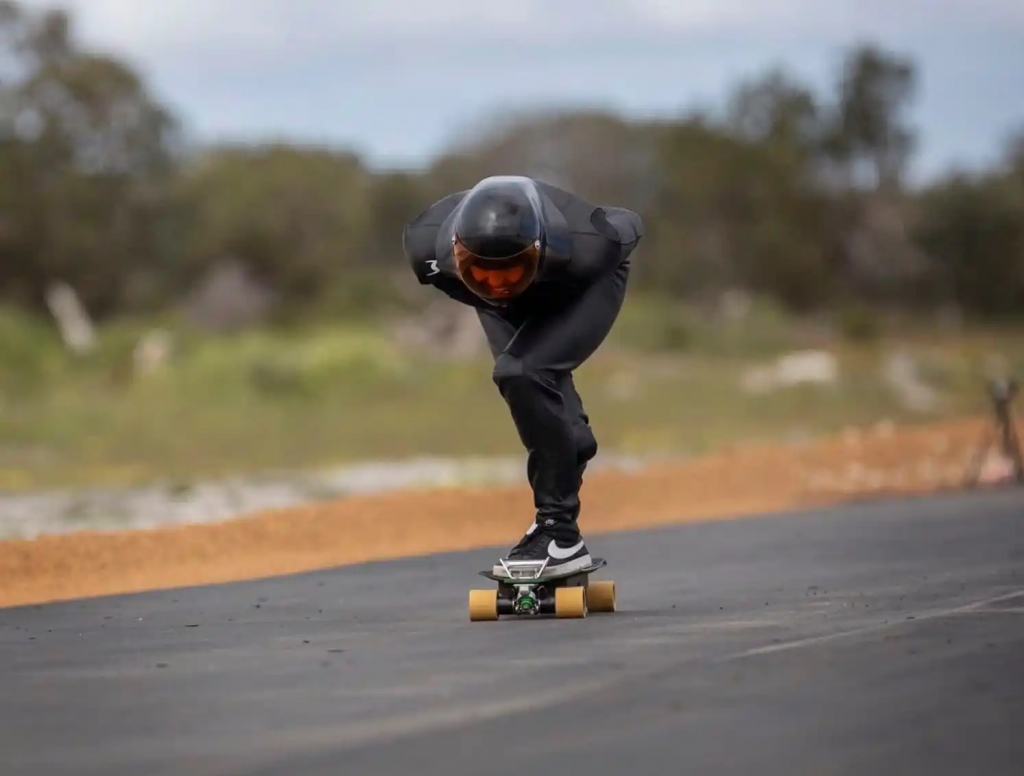 Na Austrália, o engenheiro mecânico Raine Kent dedica-se a explorar as potencialidades e os limites do conceito e acaba de estabelecer um novo recorde de velocidade em skate elétrico, ao atingir a velocidade máxima de 132 km/h. O australiano fulminou autenticamente o anterior recorde do Guinness, de 95 km/h.