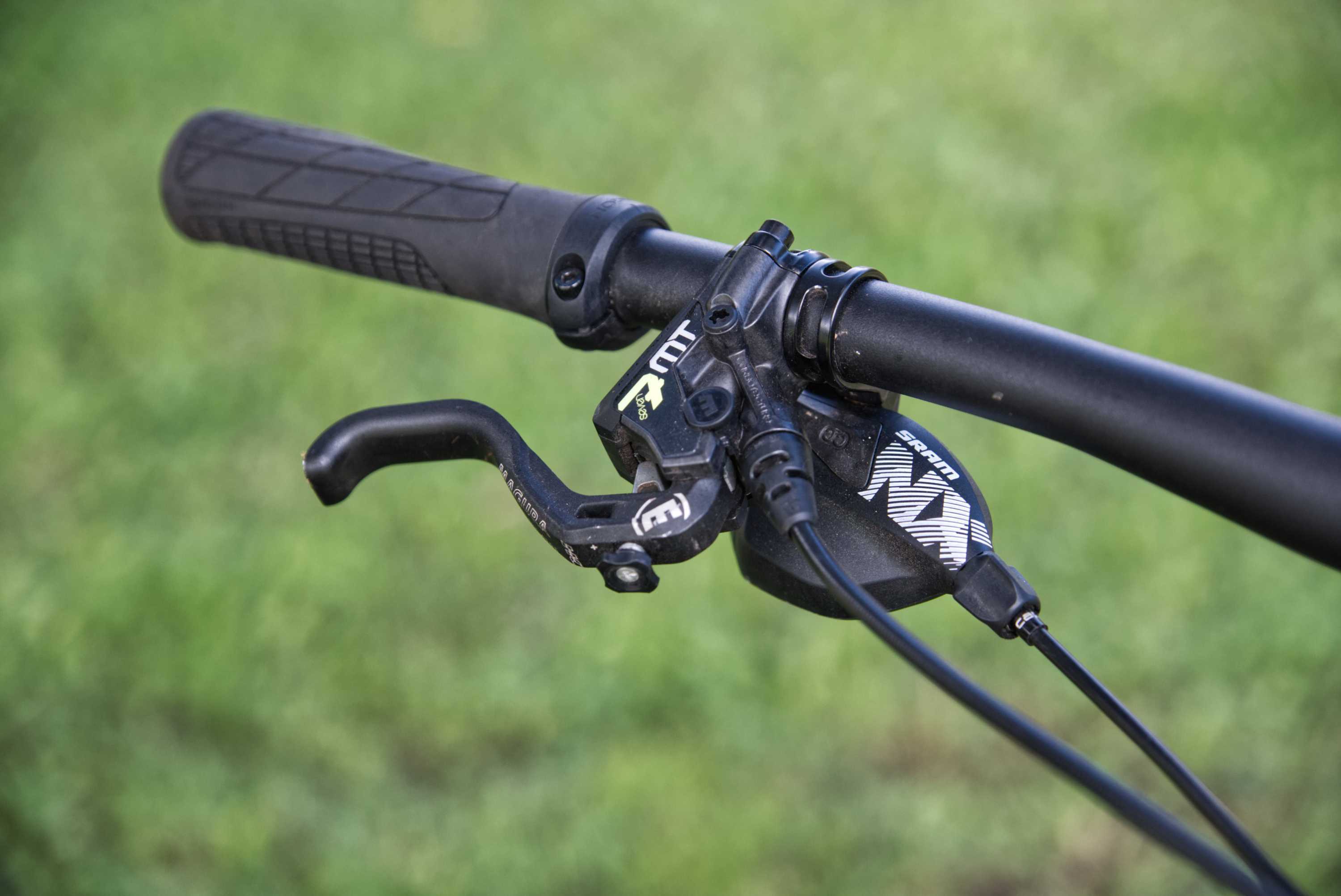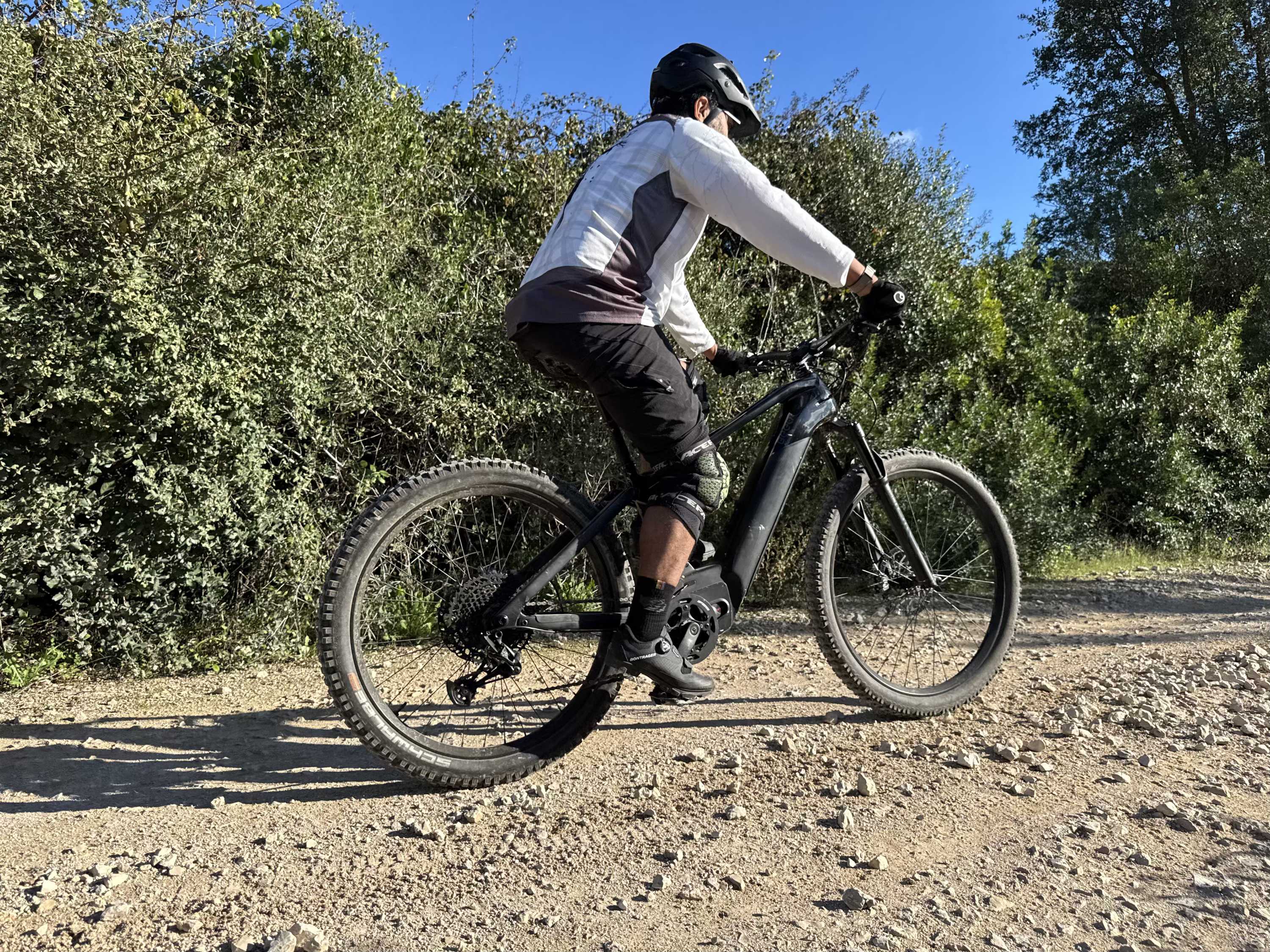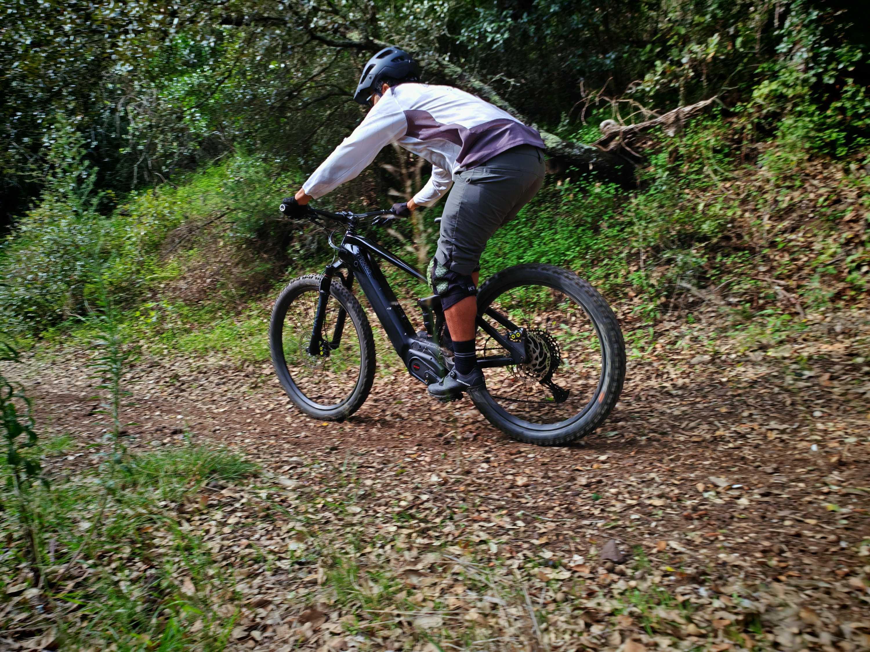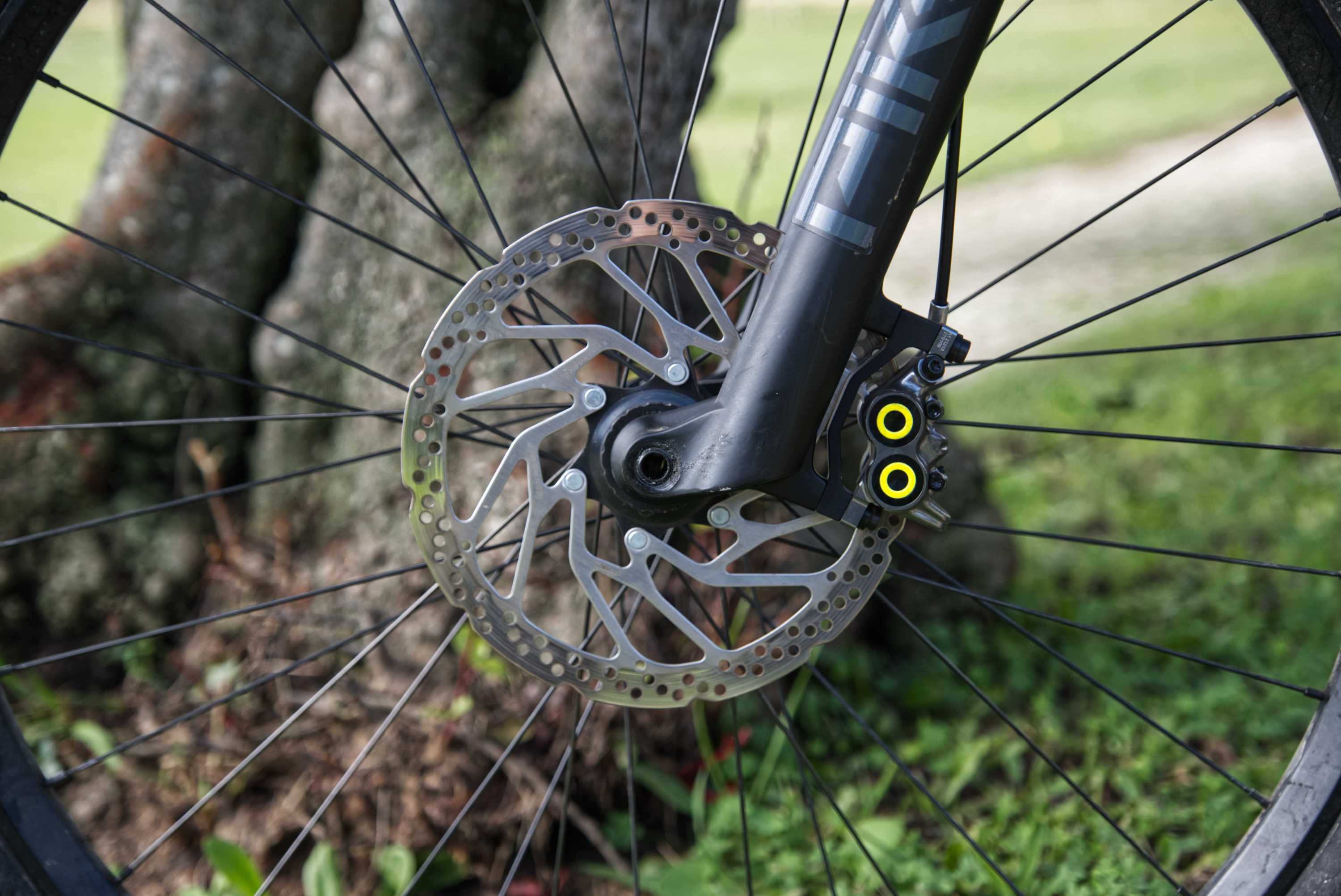 A marca optou pela solução “Mullet” com tamanhos de rodas diferentes sendo 29 na frente e 27,5 atrás com pneus Schwalbe Eddy Current (Tubeless Ready), que demonstraram excelente tração mesmo em piso solto. A potente travagem está a cargo dos Magura Hydraulic MT5 com discos de 203 mm nas duas rodas, e mostrou uma consistência muito boa, mesmo depois de ser castigada em descidas longas.