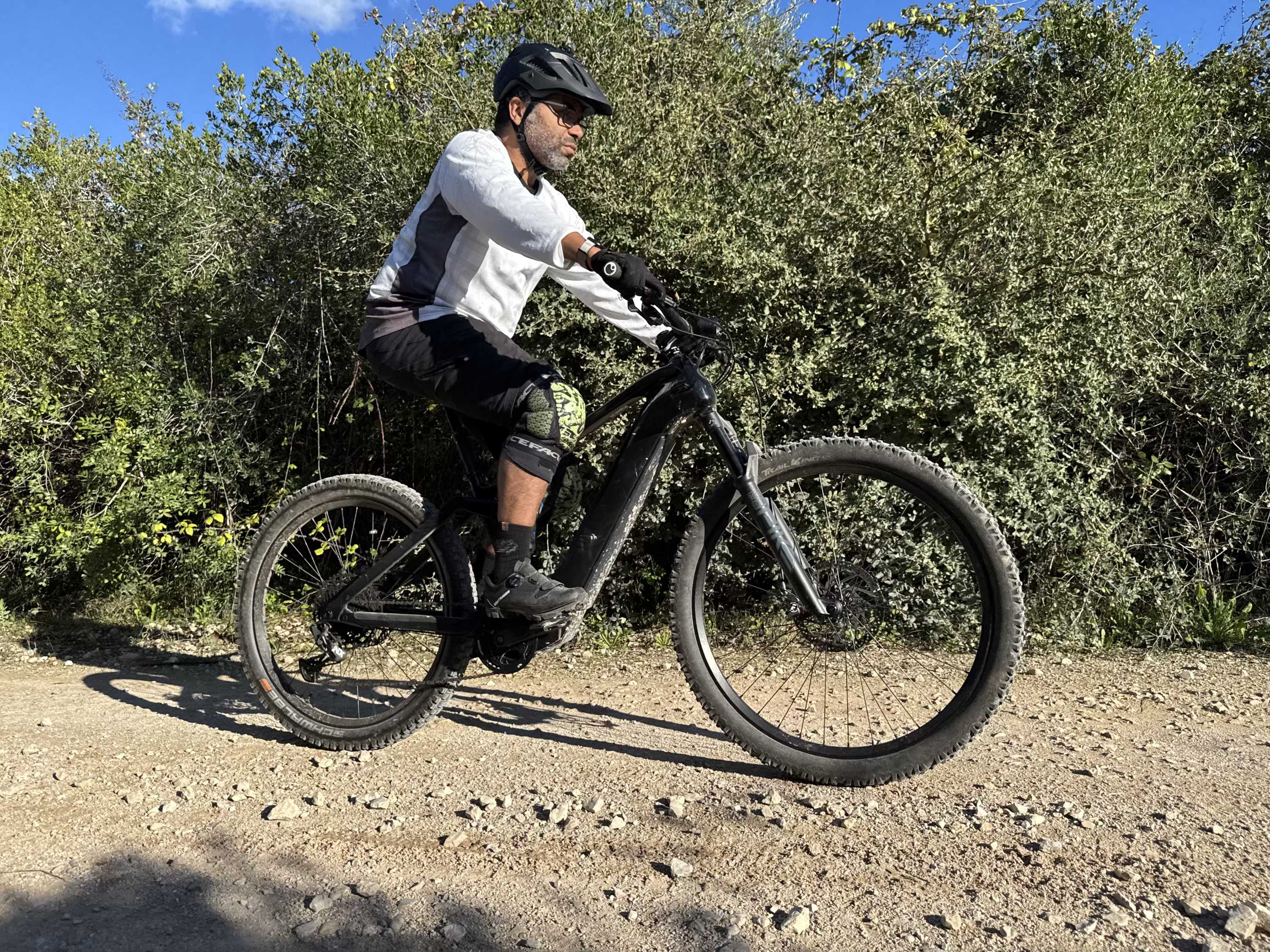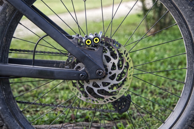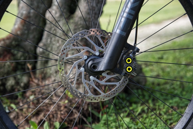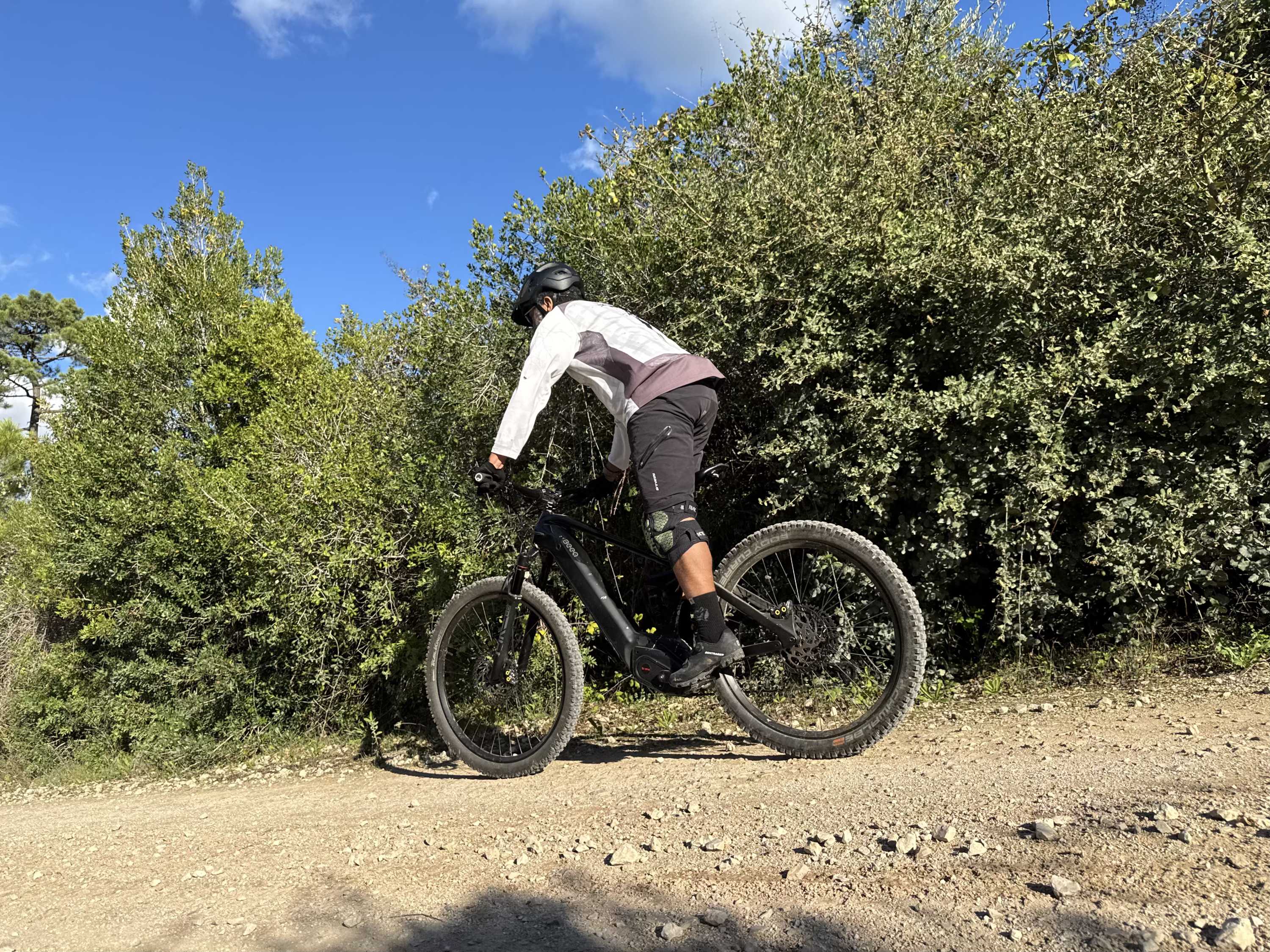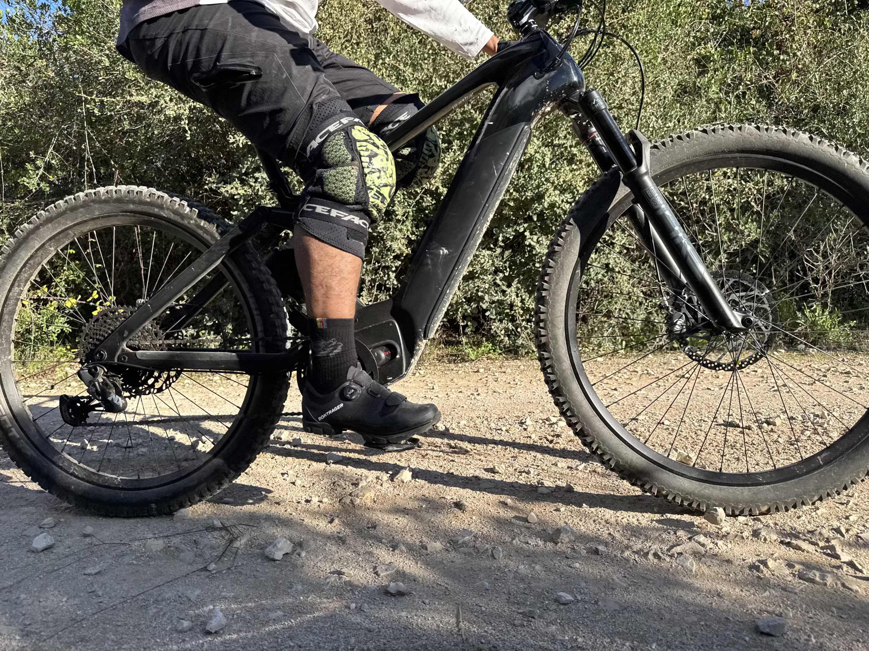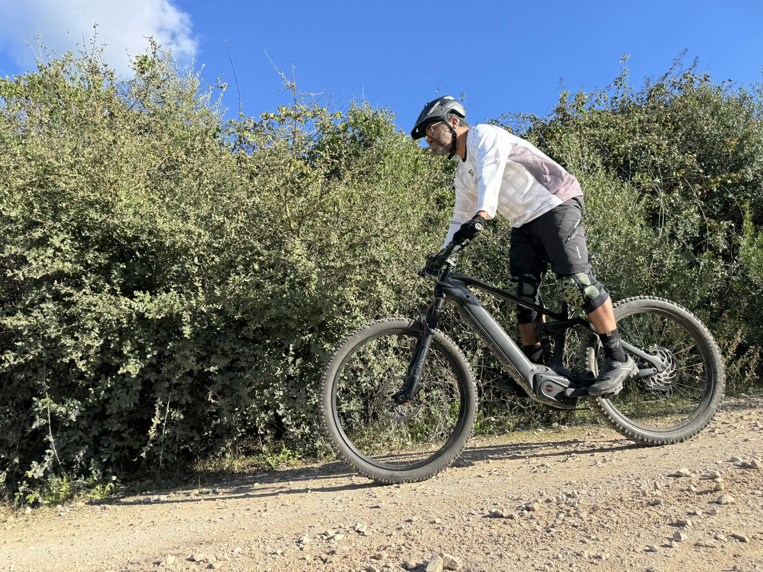 A marca optou pela solução “Mullet” com tamanhos de rodas diferentes sendo 29 na frente e 27,5 atrás com pneus Schwalbe Eddy Current (Tubeless Ready), que demonstraram excelente tração mesmo em piso solto. A potente travagem está a cargo dos Magura Hydraulic MT5 com discos de 203 mm nas duas rodas, e mostrou uma consistência muito boa, mesmo depois de ser castigada em descidas longas.