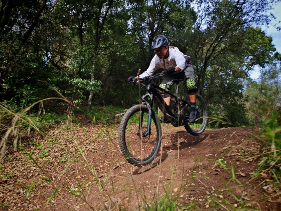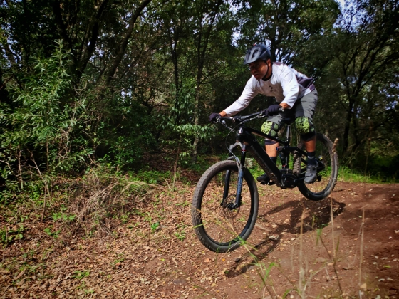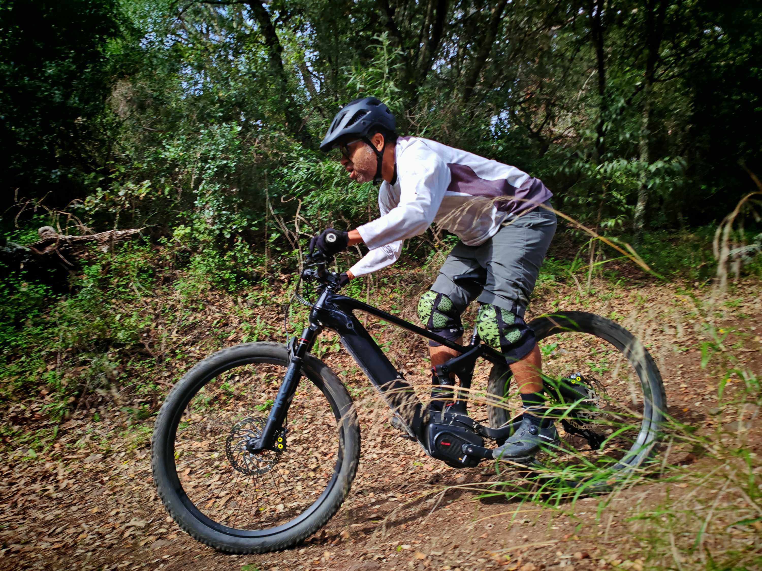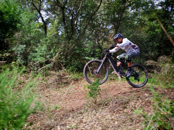 A suspensão é uma Rockshox Pike Select 29” 140mm Boost, uma opção que ajuda a manter o custo da bicicleta baixo, mas com o seu funcionamento a ar assegura um desempenho fiável em variados tipos de terreno e até mesmo em saltos. O mesmo pode ser dito do amortecedor Rockshox Deluxe Select+ Trunniun, que lidou bem com os impactos nos saltos e fez uma boa leitura do terreno para tração adicional nas subidas com pouca aderência.
