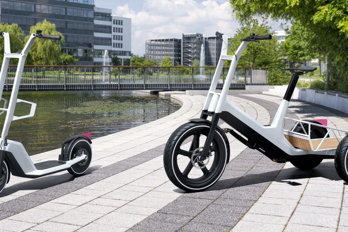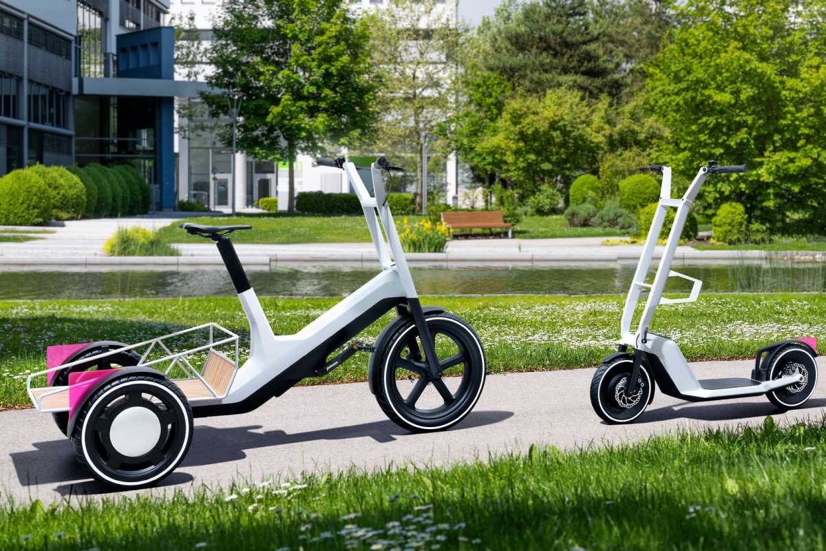 O Clever Commute é uma estilizada trotinete elétrica, muito prática, leve e fácil de arrumar na bagageira dos veículos da marca. Diferente do Dynamic Cargo, que é já um veículo de três rodas, também com assistência elétrica, mas muito mais versátil, com a particularidade de montar uma caixa de carga na traseira para o transporte de mercadorias, tipo pick-up.