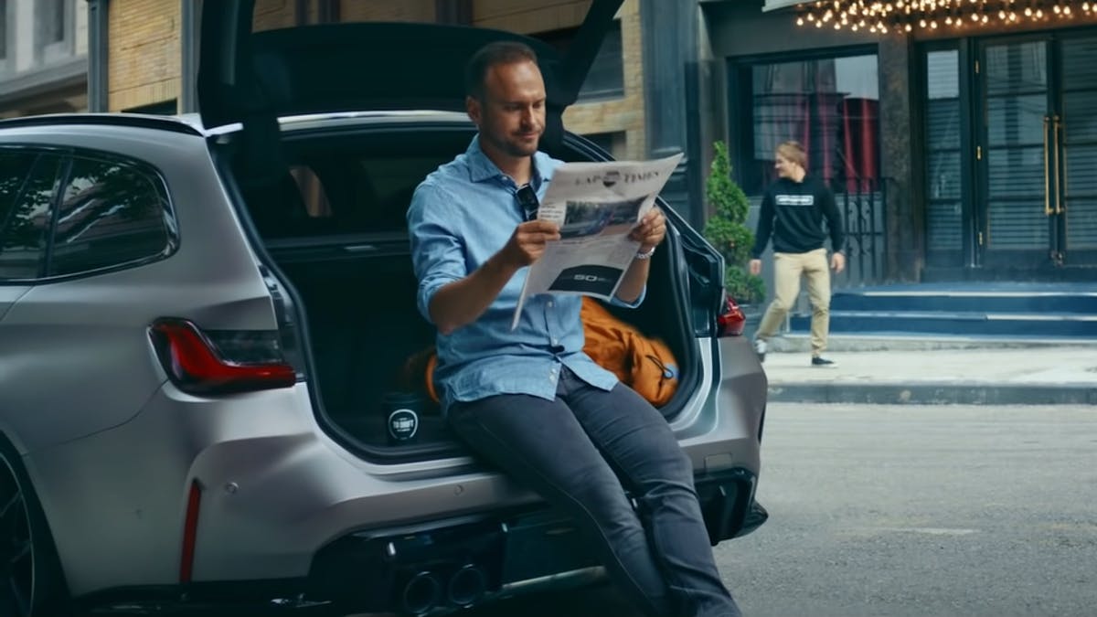 A futura M3 Touring é protagonista mais discreta, aparecendo apenas a imagem da bagageira, onde o Markus Flasch, patrão da M, está sentado a ler um jornal. Apesar da curta aparição, são facilmente identificáveis elementos como as quatro ponteiras de escape.