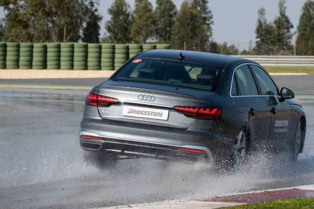 Para o final estava reservado o teste do “alce”, novamente em piso molhado, em que o condutor, em linha reta tem de se desviar de um obstáculo e regressar à faixa de rodagem. Neste exercício, o grau de dificuldade aumenta proporcionalmente à velocidade a que é feito, e mais uma vez, a uma velocidade de 70 km/h os Turanza 6 exibiram o índice de aderência necessário para evitar o obstáculo sem perder o controlo da viatura.
