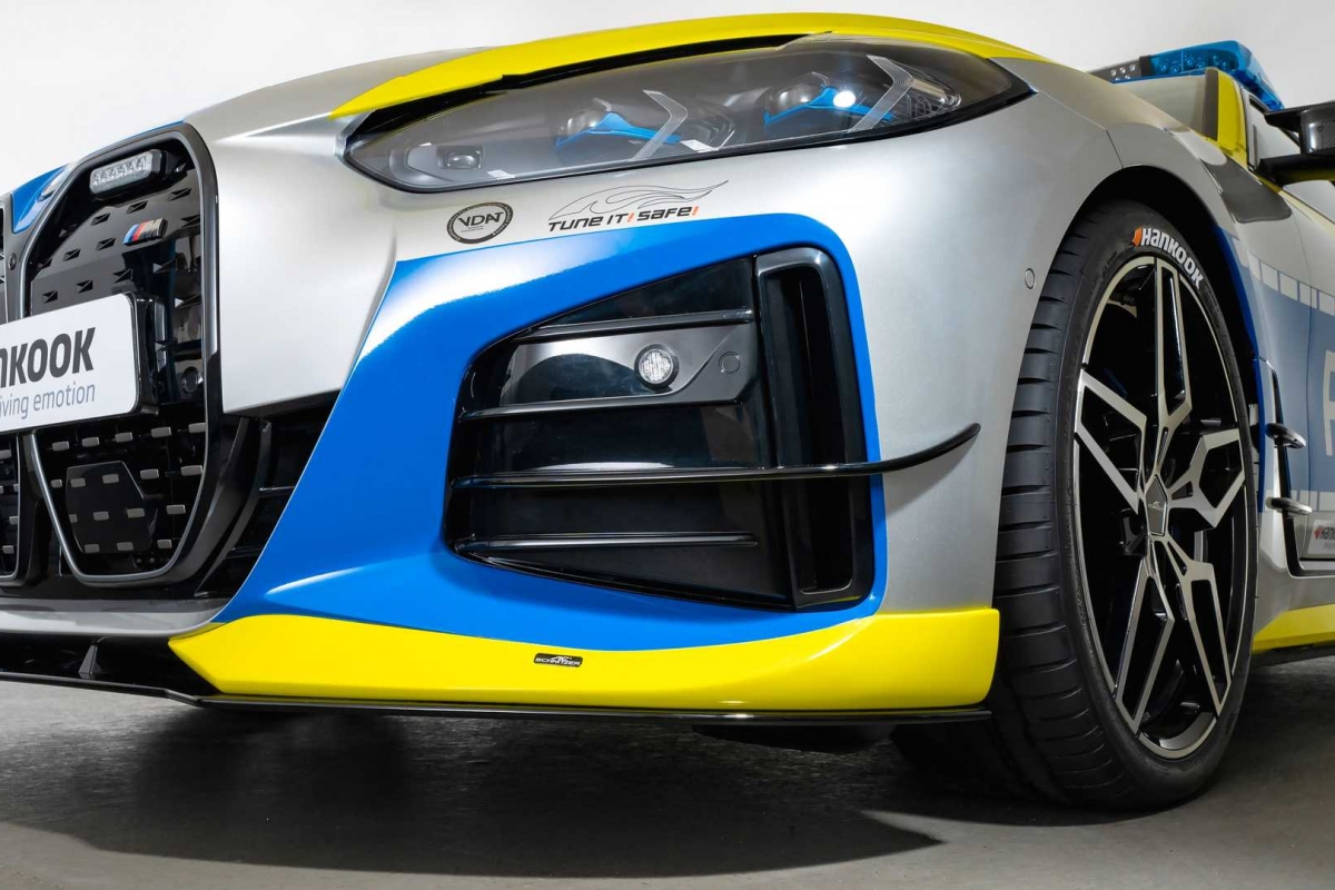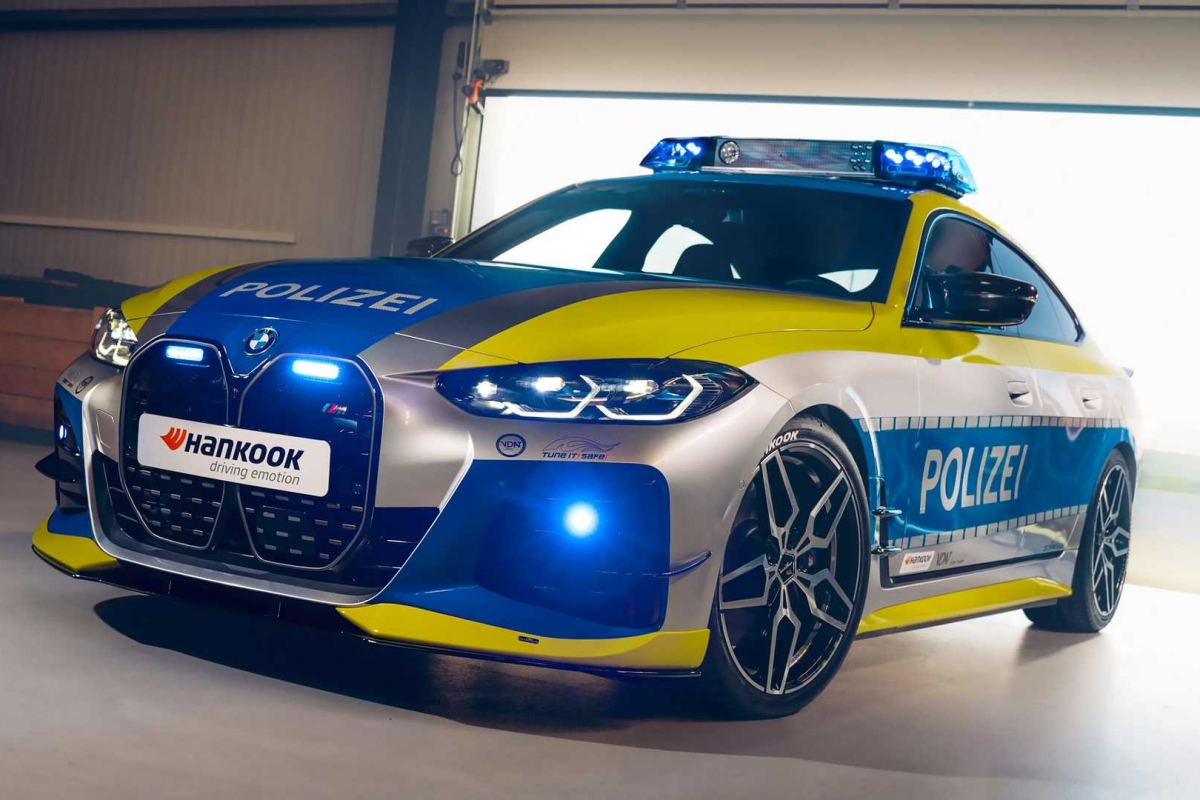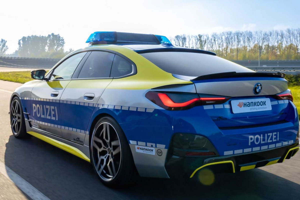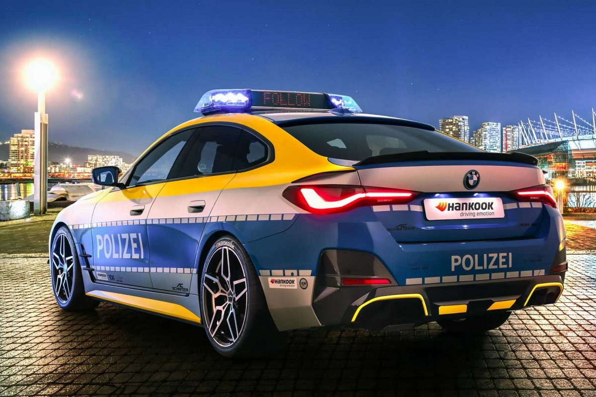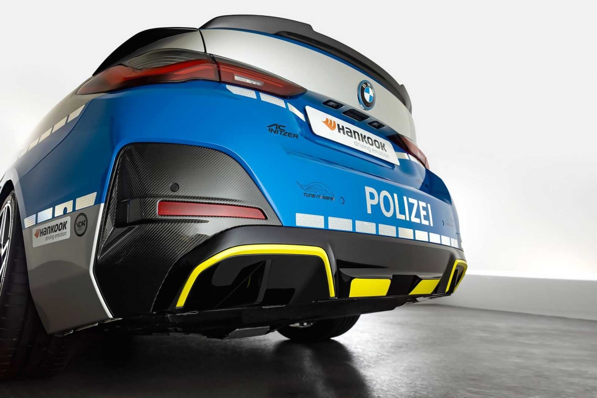 O carro da polícia alemã surge equipado com o pacote aerodinâmico da empresa, incluindo spoiler e splitter dianteiro, asas laterais à frente e atrás e spoiler posterior em carbono. Para completar o visual, o EV também vem com película de proteção da saia traseira da AC Schnitzer e pacote de design nas laterais (dois elementos em lado). O sistema de sinalização especial é da Hella, enquanto a decoração é realizada pela Foilatec. No interior, há novos acabamentos em alumínio.