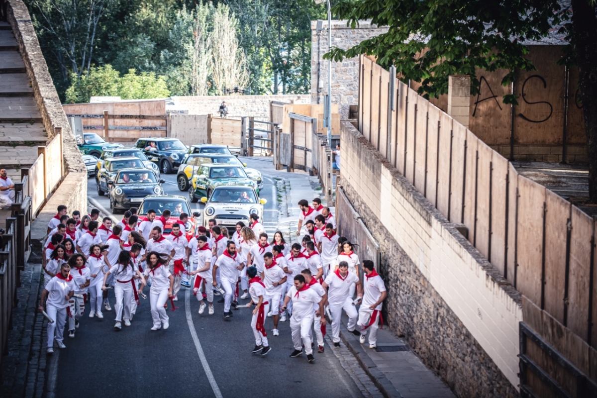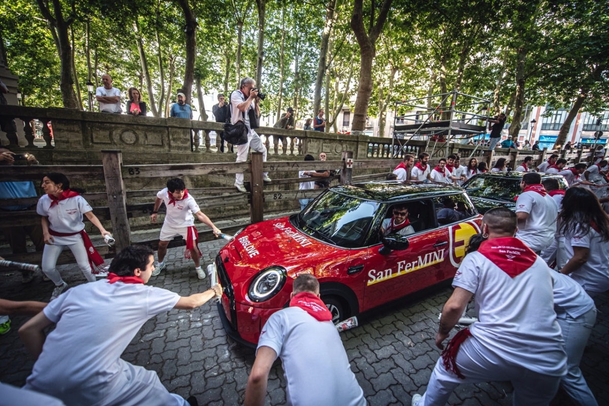 Mas, antes de San Fermín, celebrou-se o… San FerMINI, o nome dado por um concessionário local da MINI à original campanha promocional que colocou 13 elétricos da marca no lugar dos touros, para a recriar a famosa largada que se desenrola num percurso de 849 metros, terminando na praça.