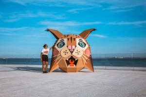 Catarina Glam (n. 1985) é uma artista visual que se foca principalmente no desenvolvimento de esculturas e instalações públicas. Após um percurso inicial pelos universos do graffiti e do papercraft, encontrou na pintura de murais e na escultura em madeira a possibilidade de aumentar a escala das suas criações, de forma a permitir que elas pudessem existir na rua. A estética das peças que cria é um reflexo do seu interesse por geometria e carpintaria, tendo encontrado nos sólidos geométricos o ponto de partida para materializar as suas personagens.