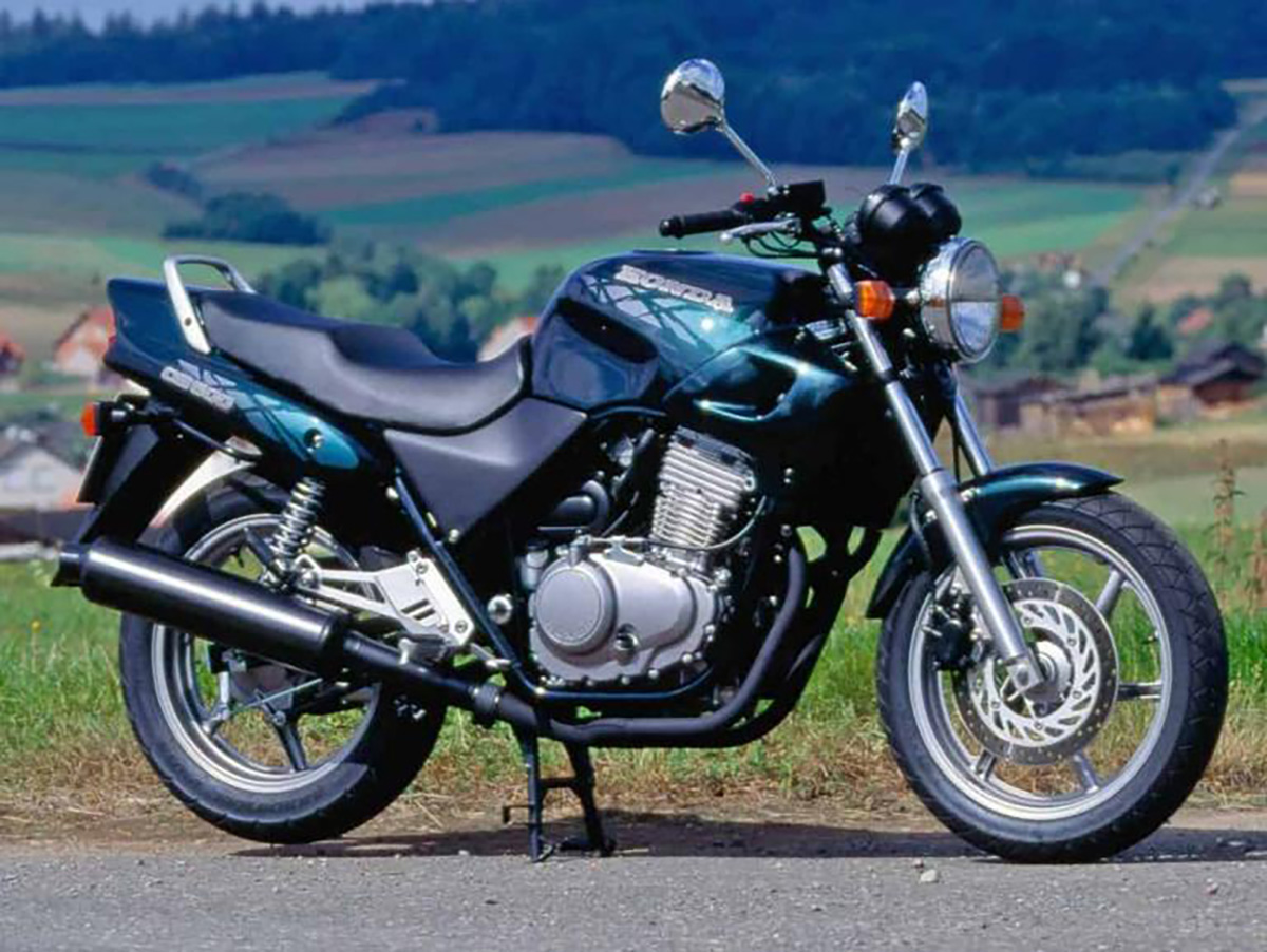 Aquela que foi, provavelmente, a mais séria adversária da GS 500 chegou ao mercado em 94. A Honda CB 500! Equipada com um excelente bicilíndrico paralelo, com refrigeração líquida, capaz de debitar uns interessantes 58 cv às 9500 rpm. Pesava quase o mesmo e só o preço não ajudava, custando 949 contos, ou seja, mais 80 contos, o que era algum dinheiro, a caminhar para mais quase 2 salários mínimos.
