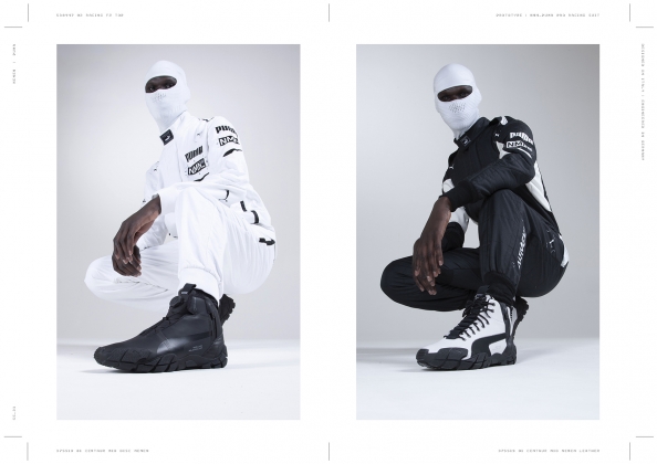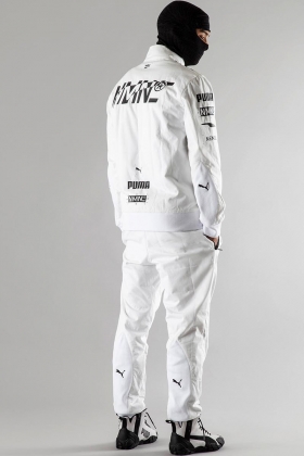 “O Racing FZ Top é particularmente inspirado no tema do automobilismo, apresentando-se como um casaco de corrida com fecho de correr branco, com uma aba e gola alta com fecho de velcro. As calças Racing Pant brancas combinam com o casaco, conferindo um estilo totalmente inspirado no desporto”, explica a Puma.
