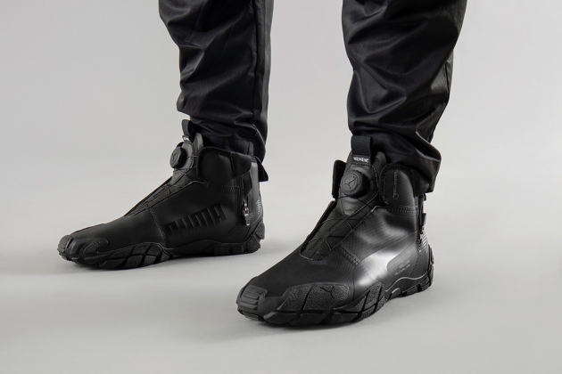 Esta ligação ao universo dos motores está em detalhes exclusivos como a inovadora tecnologia de Disco da Puma, um novo sistema de fecho, incorporado no calçado e vestuário ou a impressão em borracha das duas marcas estrategicamente colocadas para simular um fato de competição.