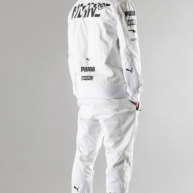 “O Racing FZ Top é particularmente inspirado no tema do automobilismo, apresentando-se como um casaco de corrida com fecho de correr branco, com uma aba e gola alta com fecho de velcro. As calças Racing Pant brancas combinam com o casaco, conferindo um estilo totalmente inspirado no desporto”, explica a Puma.