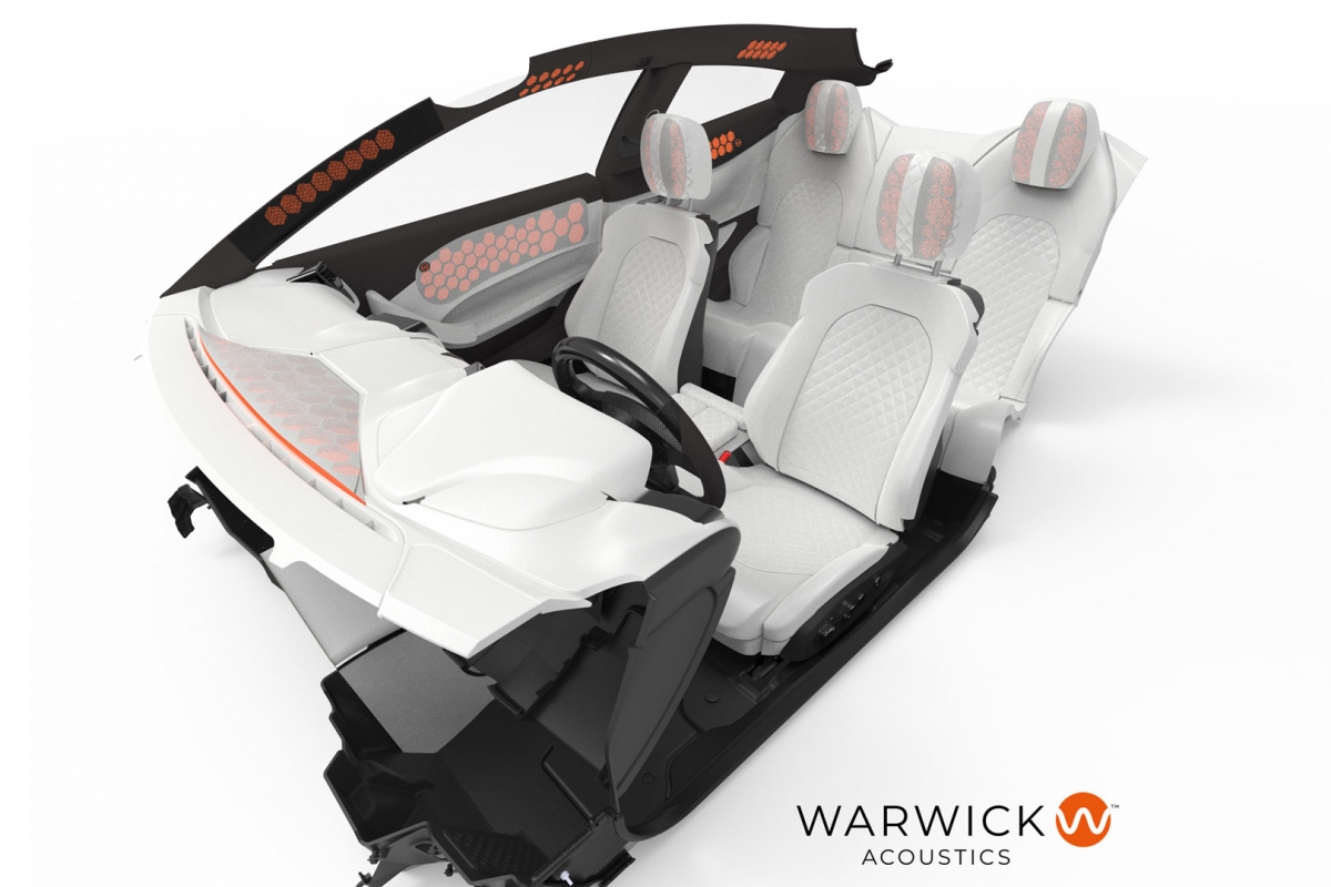 Transformar as colunas pesadas e volumosas tradicionais numa solução de áudio de alta qualidade praticamente invisível para condutor e ocupantes no interior do veículo, aumentado as possibilidades em matéria de espaço, design e sustentabilidade. Esta é a proposta dos painéis eletroacústicos da Warwick Acoustics, que são até 90 % mais leves do que os equipamentos tradicionais, fabricados em materiais 100% reciclados e recicláveis. O sistema descarta a maioria dos componentes utilizados nos equipamentos de áudio que conhecemos e recorre a uma tecnologia de painéis planos que vibram, semelhante a que é usada nos smartphones.