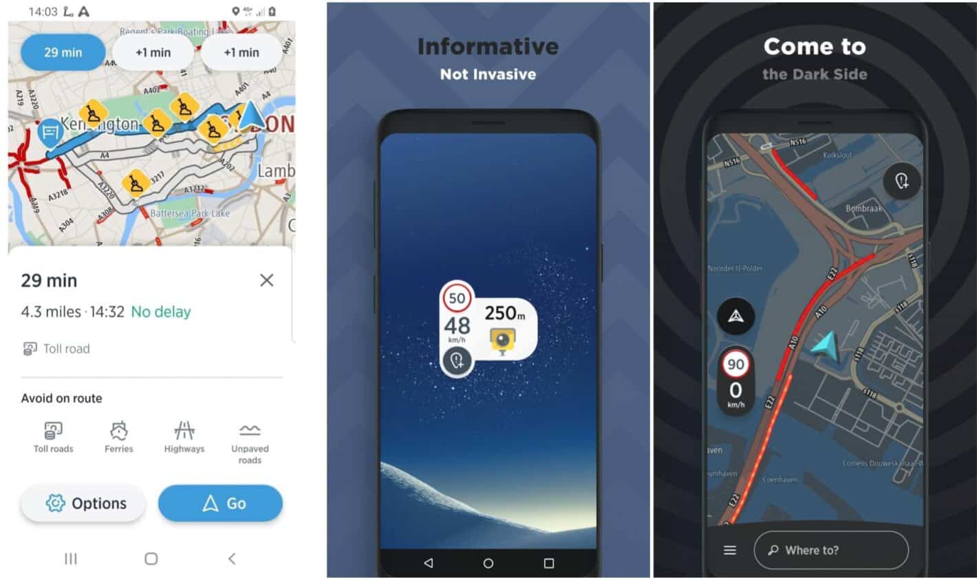 É uma alternativa ao Google Maps e ao Waze e é compatível com Android Auto para ser visualizado no ecrã do carro. Com esta app poderá receber alertas em tempo real dos radares fixos e móveis, zonas de velocidade média, engarrafamentos, estradas bloqueadas e cortadas, planificar rotas tendo em conta o trânsito…