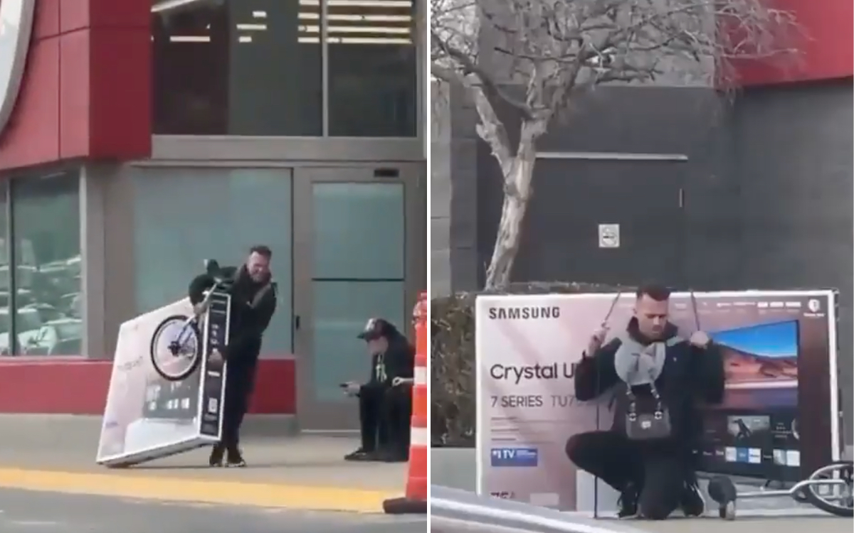 Não sabemos se foi o caso do protagonista deste vídeo, mas à falta de furgão espaçoso para transportar o enorme aparelho, aqui está a alternativa… só em uma roda!