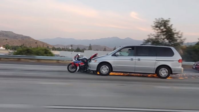 Os testemunhos recolhidos no local permitiram apurar que o monovolume embateu com violência na traseira da Honda CBR600 que podemos ver nas imagens, projetando o seu condutor a mais de 60 metros. O motociclista ficou ferido sem gravidade, tendo ainda referido que terá sido abalroado pelo veículo de quatro rodas quando seguia a uma velocidade de cerca de 110 km/h, e que o condutor do monovolume não mostrou qualquer intenção de abrandar. “Pensei que este tipo queria matar-me”, declarou aos agentes do departamento de trânsito.