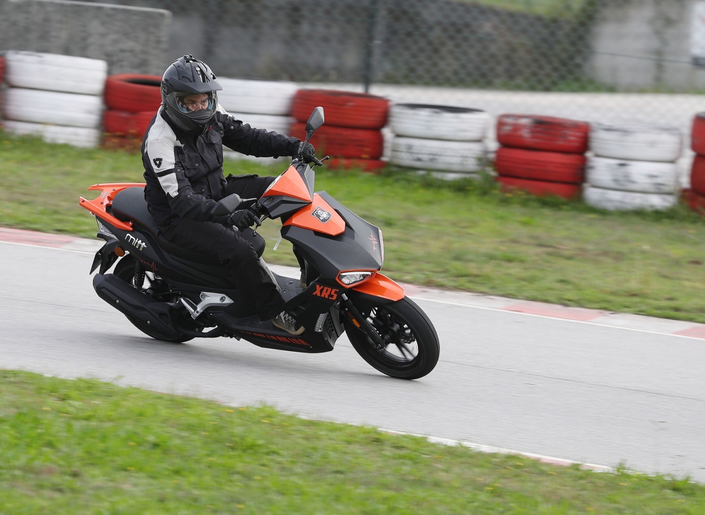 No curto contato que tivemos apenas andámos em pista, mas deu para concluirmos que a ciclística assente no chassis tubular é eficaz, estável em reta e curva muito bem. A forquilha telescópica e os dois amortecedores, juntamente com as rodas em alumínio com 10 braços e 14 polegadas de diâmetro proporcionam um bom nível de conforto. O pequeno monocilindro é muito disponível e consegue levar-nos rapidamente até à velocidade máxima graças à leveza do conjunto (110 kg), o que beneficiará também a agilidade no trânsito citadino. A travagem pareceu-nos muito progressiva por ser combinada para maior segurança e conta com disco e pinça de dois pistões na frente e apenas um pistão atrás.