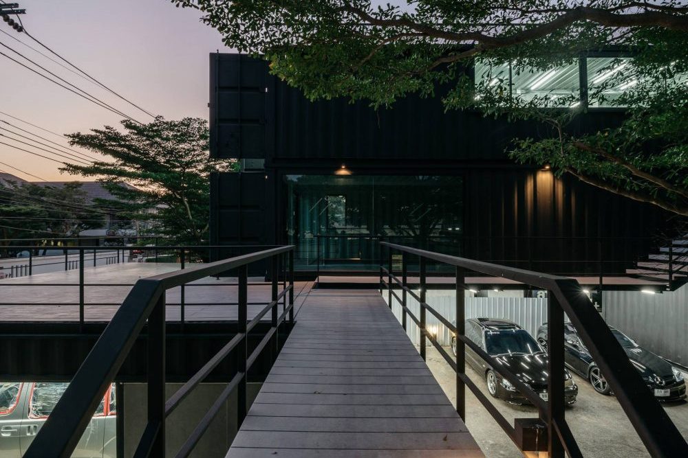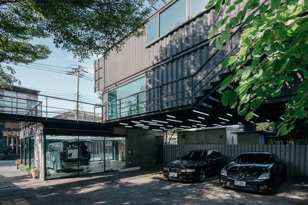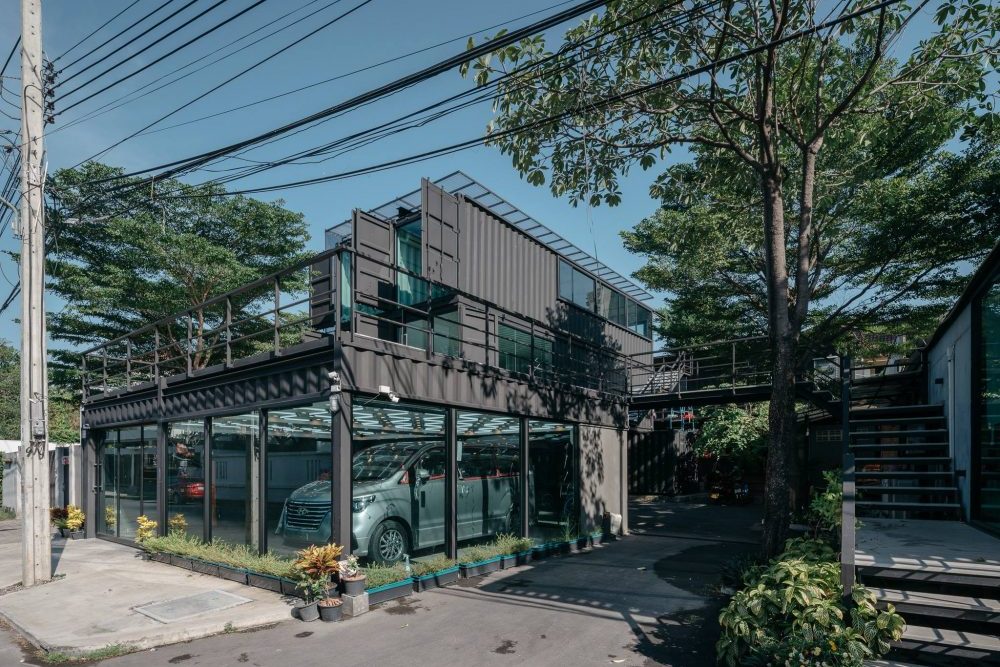 O Muang Thong Thani Carcare foi desenhado pela firma de arquitetura Archimontage, utilizando quatro contentores pequenos (de seis metros de comprimento e 2,4 metros de largura) e quatro contentores grandes (de 12 metros de comprimento e 2,4 metros de largura) para criar esta garagem. A planta faz bom uso de todo o material para criar uma pequena área de exposição, espaços abertos para estacionamento e escritórios los lugares de cima, com escadarias de acesso fácil a qualquer ponto do edifício. A área total do terreno é de 300 metros quadrados.