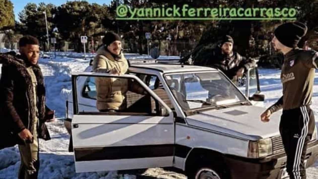 Nem SUV de luxo, nem todo-o-terreno de marcas de prestígio, Yannick Carrasco, avançado da equipa principal do Atlético de Madrid, enfrenta a neve na capital espanhola ao volante de Fiat Panda com 40 anos.