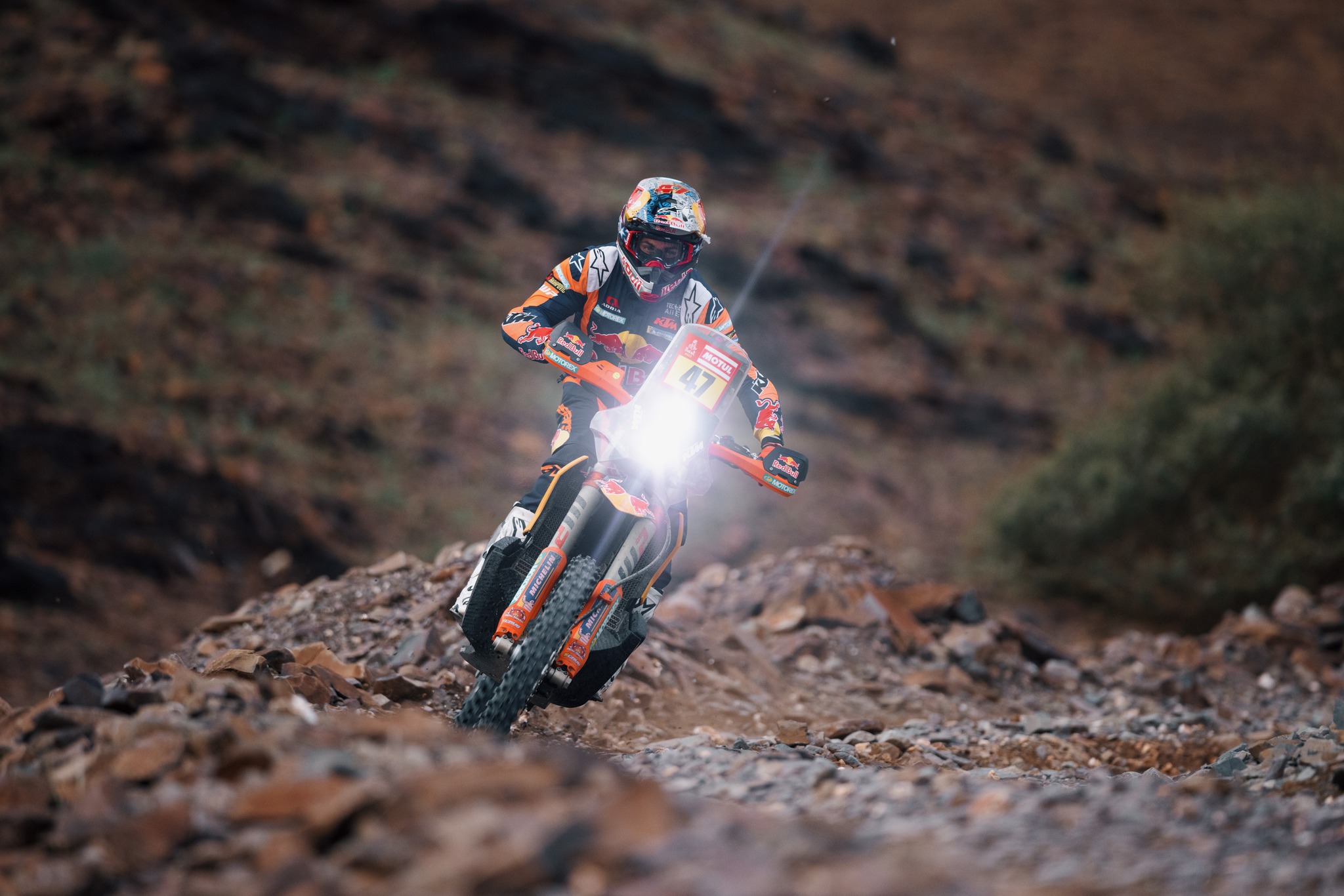 O norte-americano Mason Klein (KTM) tornou-se, aos 21 anos, no mais novo de sempre a vencer uma tirada e a assumir a liderança da prova, depois de ter batido o luso-germânico Sebastian Bühler (Hero) por 1.09 minutos, com o também norte-americano Skyler Howes (Husqvarna) em terceiro, a 1.13 minutos, após os 430 quilómetros cronometrados entre Sea Camp e Al Ula.