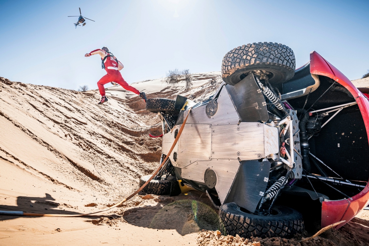 “Perto do quilómetro 168 dei um toque numa erva camelo e parti o braço de suspensão inferior. Tive de esperar pelo camião de assistência rápida e substituir a peça. Perdi mais de 2:30 horas e tive de fazer os últimos 100 quilómetros de dunas de noite. Confesso que estou dececionado com toda esta “mala suerte” que nos tem acompanhado nesta corrida… mas não vamos baixar os braços”, prometeu o piloto de Leiria, antigo campeão nacional de todo-o-terreno.