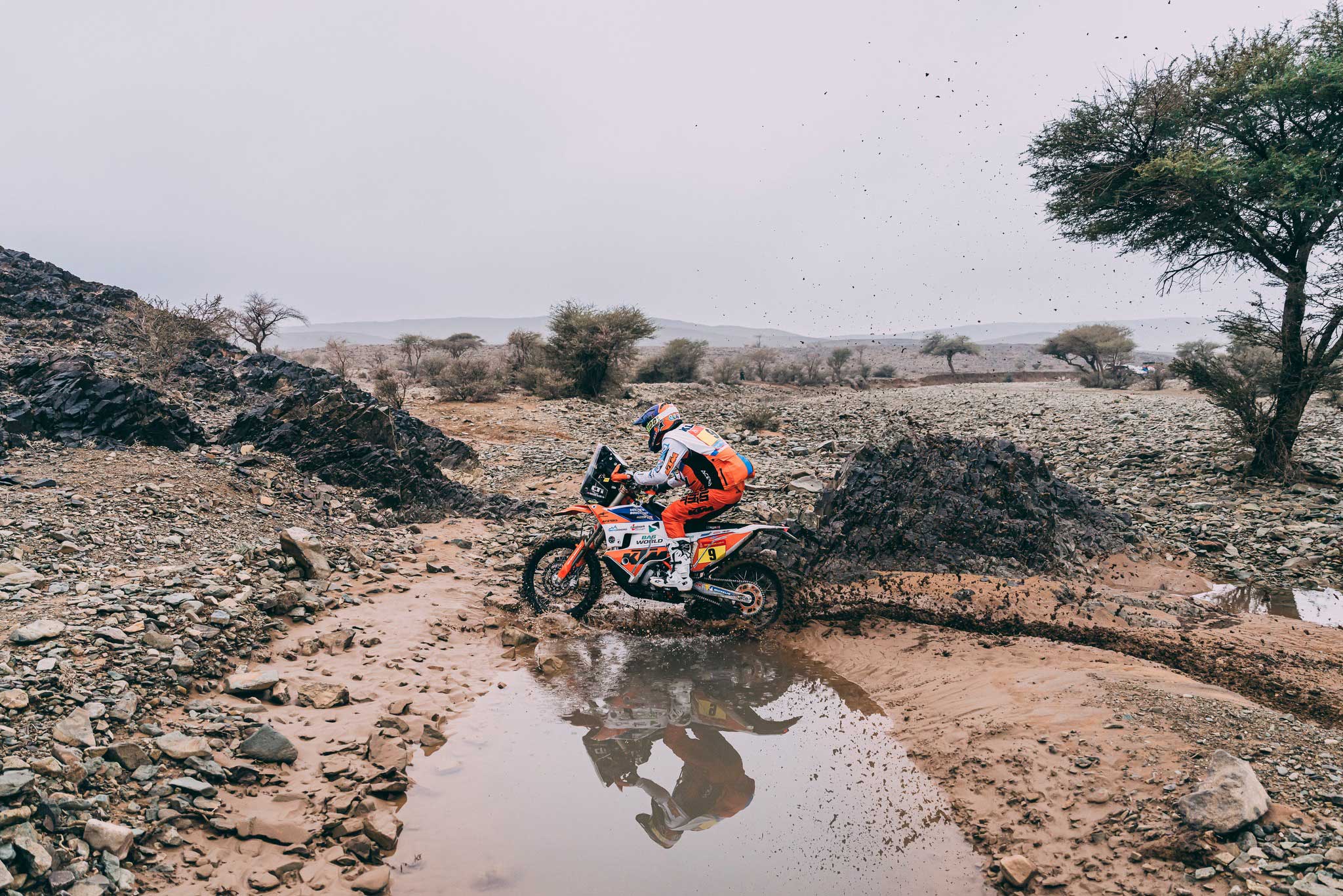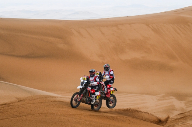 Nas motas, o piloto do Botswana Ross Branch (Hero) foi o mais rápido, com 03.15 minutos de vantagem sobre o australiano Daniel Sanders (GasGas), com o norte-americano Mason Klein (KTM) em terceiro, a 3.33 minutos, diferença que já inclui uma penalização de dois minutos por excesso de velocidade, que lhe roubou a liderança da prova.