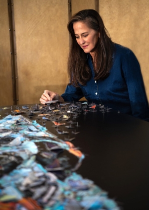 A obra de Heidi Mraz mede 1,80 por 1,20 metros e está realizada com base no chassis 917-022, o mais icónico exemplar de todos os 917 com a sua decoração Gulf. Na “carroçaria” estão aproximadamente mil borboletas de papel cortadas à mão de revistas e jornais.