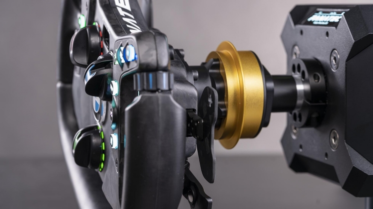Com um encaixe QR2 compatível com simuladores, o volante construído em fibra de carbono para obedecer aos rigorosíssimos critérios da competição, e para o ‘gamer’ que apenas se conforma com o máximo realismo possível, pesa 1,4 kg, dispondo de 12 botões na face dianteira, dois na zona posterior, três interruptores rotativos e patilhas.