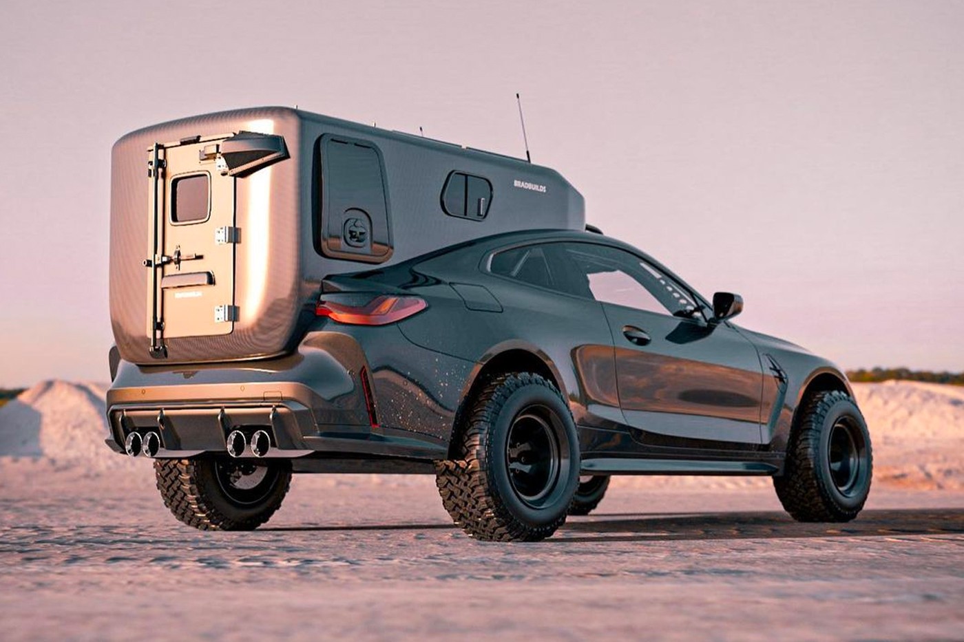 O estudo gráfico assinado por Brad Builds parte das linhas do coupé para criar um concept de porte impressionante, com altura elevada ao solo e pneus específicos para condução em fora de estrada, para progredir sem sobressaltos em todos os tipos de terrenos. No tejadilho, os aposentos, na forma de uma cabine de linhas estilizadas, onde duas pessoas podem pernoitar em ótimas condições de conforto, faça chuva ou faça sol.