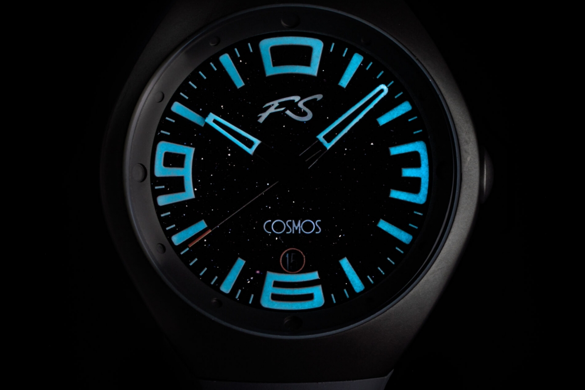 O mostrador do relógio imita o céu noturno estrelado. Os números 0, 3, 6 e 9 foram estilizados como os mostradores do conta-rotações de um automóvel. Já os ponteiros são brancos e parecem flutuar.