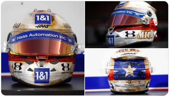 Mick Schumacher, o alemão da Haas ostenta a bandeira do estado do Texas e a Estrela Solitária, símbolo da região, com o n.º 47 numa tradicional placa de estrada americana.Veja todas as homenagens abaixo: