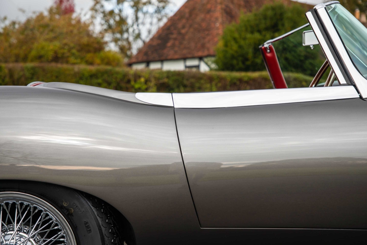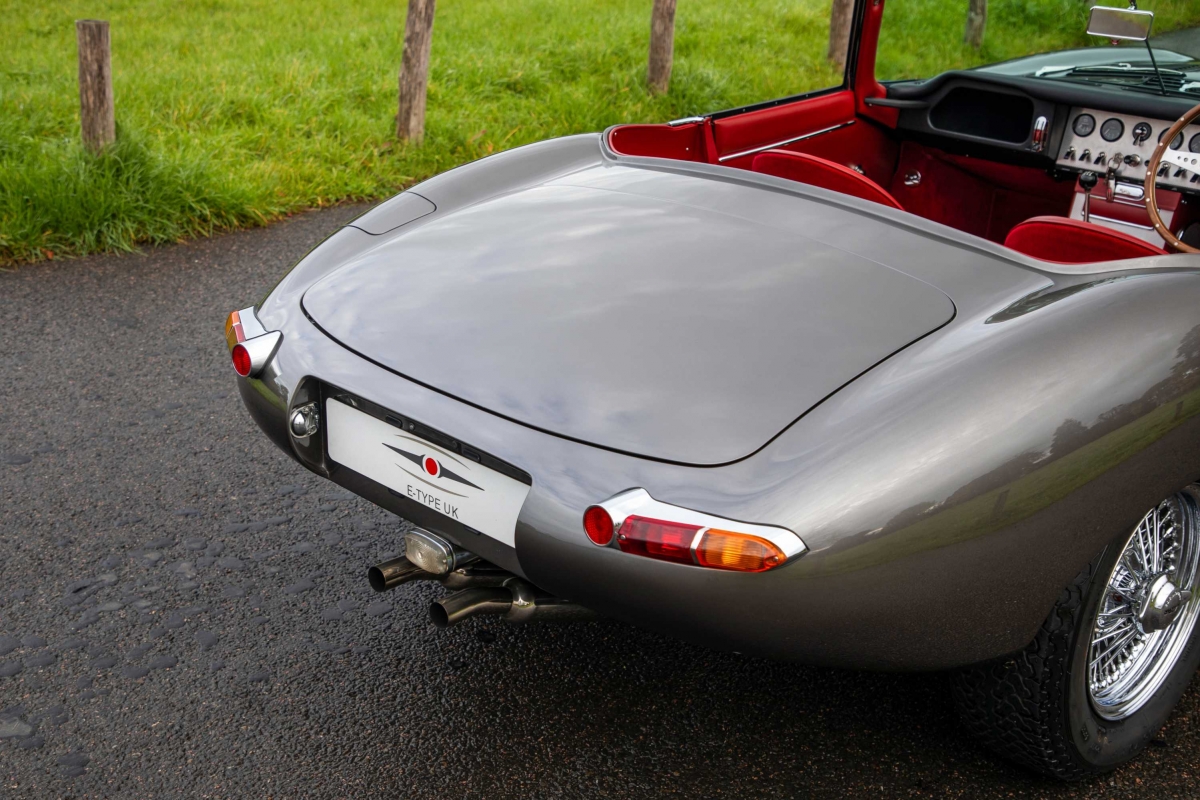 Durante a análise do carro pela equipa, descobriu-se que eram necessárias reparações significativas na carroçaria, com vários painéis muito corroídos ou apodrecidos devido a anos de exposição aos elementos. A E-Type UK aproveitou esta oportunidade para aperfeiçoar ainda mais a carroçaria e melhorar o design icónico dos anos 60, com um capot e uma porta traseira sem costuras, incluindo um maior arredondamento das arestas da carroçaria em todo o carro. O processo de descostura também permitiu que os especialistas removessem os cromados exteriores para um aspeto mais limpo, incluindo os puxadores exteriores das portas – substituídos por um subtil sistema eletrónico interno. A nova estética foi rematada por coberturas de faróis personalizadas e – sem necessidade de acomodar uma capota – todas as arestas de acabamento foram arredondadas.