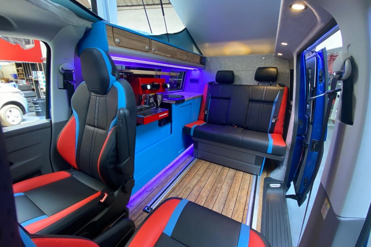 A transformação incluiu a instalação de várias camas, cozinha e até uma cafetaria profissional, sem esquecer o espaço próprio de arrumação para as bicicletas. Esta espécie de caravana de luxo para desportistas tem o cunho dos especialistas da CJL Leisure Vehicles, com a certificação oficial da Volkswagen Veículos Comerciais.