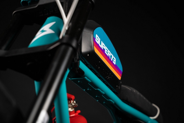 Além da original combinação de cores para o quadro e para todos os restantes componentes, a fabricante californiana de e-bikes também buscou inspiração nas bacquets de competição para desenhar o assento do veículo de duas rodas, que com revestimento em Alcantara. Outro apontamento de estilo de inspiração retro está nas rodas, com os aros a dourado e pneus especiais da Apache Fattyslick.