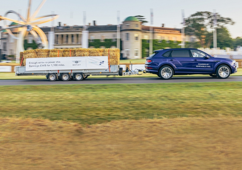 O pitoresco é que a quantidade da palha rebocada (pelo Betayga EWB – Extended Wheelbase Range – com as tais 2,5 toneladas), quando convertida em biocombustível, permitiria abastecer o Bentayga durante 1770 km ou abastecer todos os Bentleys durante o fim de semana em Goodwood.