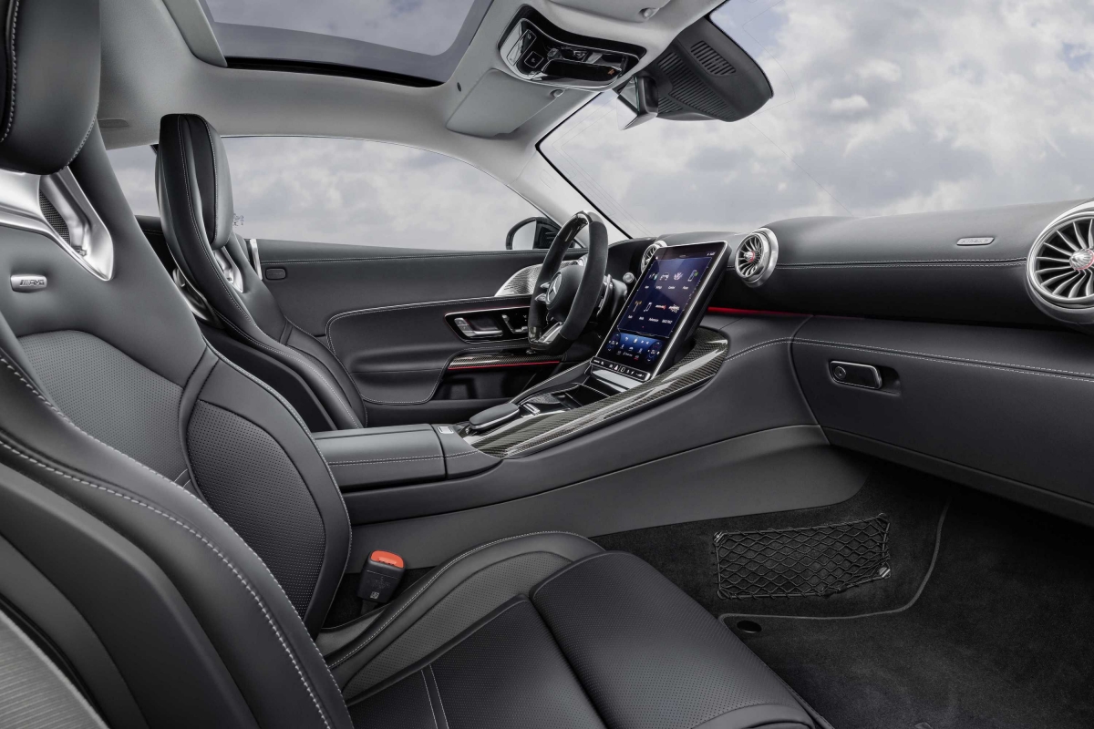 Por muito impressionante que seja a performance de um automóvel desportivo, de pouco vale se não for prático para utilizar no dia-a-dia. Nesse aspeto o novo AMG GT Coupé melhorou substancialmente, ao oferecer a possibilidade de optar pela solução mais espaçosa de 2+2 lugares, que já permite levar as crianças à escola. O excelente conforto dos bancos do condutor e do passageiro, pode ser elevado com câmaras de ar insufláveis opcionais, que nos modos Sport, Sport+ e RACE são ajustadas automaticamente ao corpo para fornecer um ótimo apoio lateral. Para além disso está equipado com a mais recente tecnologia de ajudas à condução, bem como serviços de conectividade que integram Apple CarPlay e Android Auto, assistente de voz inteligente e sistema de som surround Burmester, para uma utilização diária perfeitamente tranquila.