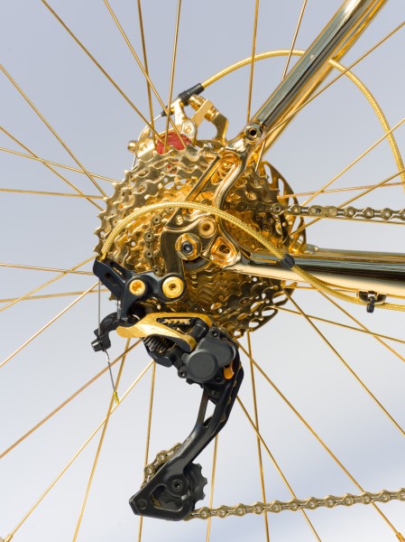 Chama-se Beverly Hills Edition 24K Gold Extreme Mountain Bike, e o nome remete não só para a cidade no condado de Los Angeles, no estado norte-americano da Califórnia, onde está baseado o estúdio de design, como para um dos elementos principais na sua conceção: o ouro de 24 quilates usado no quadro por processo de galvanoplastia e no fabricado de vários componentes.