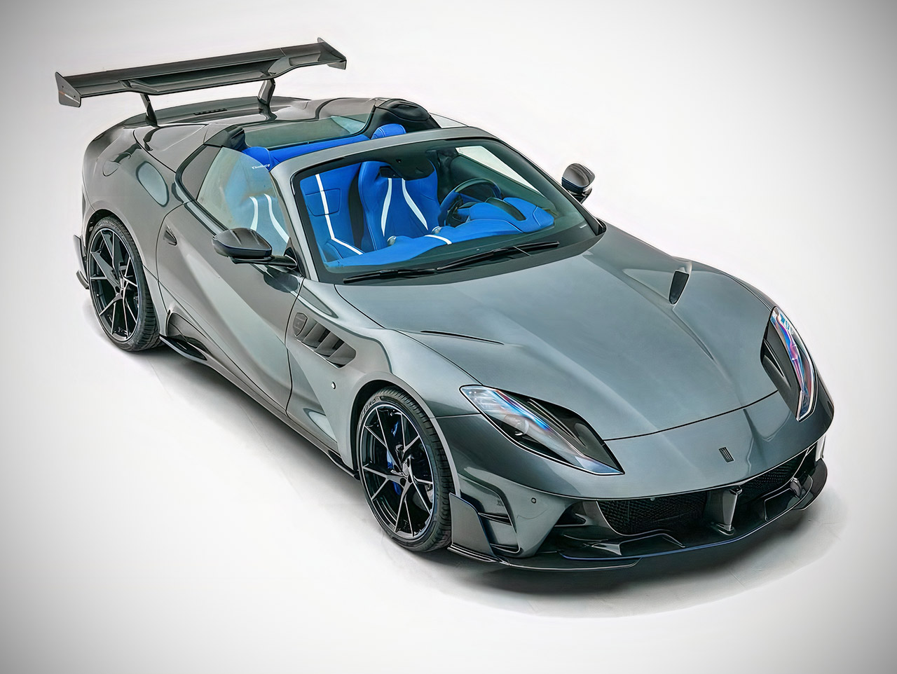 MANSORY presents the " MANSORY Stallone GTS (MY21)"" based on the Ferrari 812 After the "MANSORY Stallone GT", MANSORY presents on time for spring the"MANSORY Stallone GTS (MY21)", a Spider for the highest demandsof open-top driving. Complete vehicle conversionAll add-on parts in carbonPower increase to 830 hp and 740 NmPerformance: Vmax 345 km/h and 0-100 km/h in 2.8s CO2 emissions (combined): 383 g/kmFuel consumption (combined): 17,3 l/100km