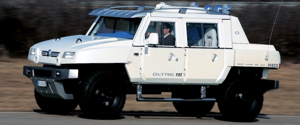 É uma versão “Crew-Cab”, ou seja, cabina dupla e caixa aberta, que obtém o melhor balanço entre o sentimento de dominar o terreno, dentro da confortável cabine, e a personalidade espartana de uma pick-up para uma expedição pura. A estrutura tubular por cima da cabine aumenta a solidez do automóvel, tendo ainda um rollbar dentro do habitáculo. Finalmente, o guarda-sol ajustável no tejadilho, por cima do pára-brisas, aumenta o dinamismo do tejadilho e recria a típica estrutura usada nos veículos que atravessam desertos. O Oltre claramente tem poder e solidez, tendo todas as funcionalidades do veículo militar, começando pela tracção 4×4 permanente, assegurando que pode atacar qualquer obstáculo pelo caminho. O mérito vai também para a grande distância ao solo, de 500 mm, a suspensão independente de alta eficiência, com molas helicoidais e amortecedores coaxiais.