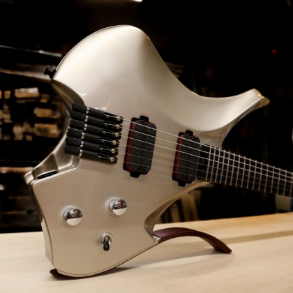 A pintura é a mesma Saragon Quartz, com acabamento brilhante de tom champanhe criado pela McLaren, enquanto o “chassis” é o da guitarra Virtus, uma variante sem cabeça para ser mais ergonómica, leve e mais elegante. O corpo está fabricado num stock antigo de madeiras, com elementos em alumínio de qualidade aeronáutica, fibra de carbono e pele costurada à mão, como no supercarro de 3,5 milhões.