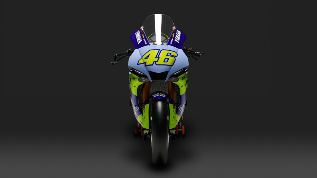 Entre os muitos pormenores deliciosos, este ‘one-off’ tem inscrita no quadro de instrumentos digital uma mensagem da Yamaha para o recém-retirado piloto italiano: ‘Grazie Vale’.