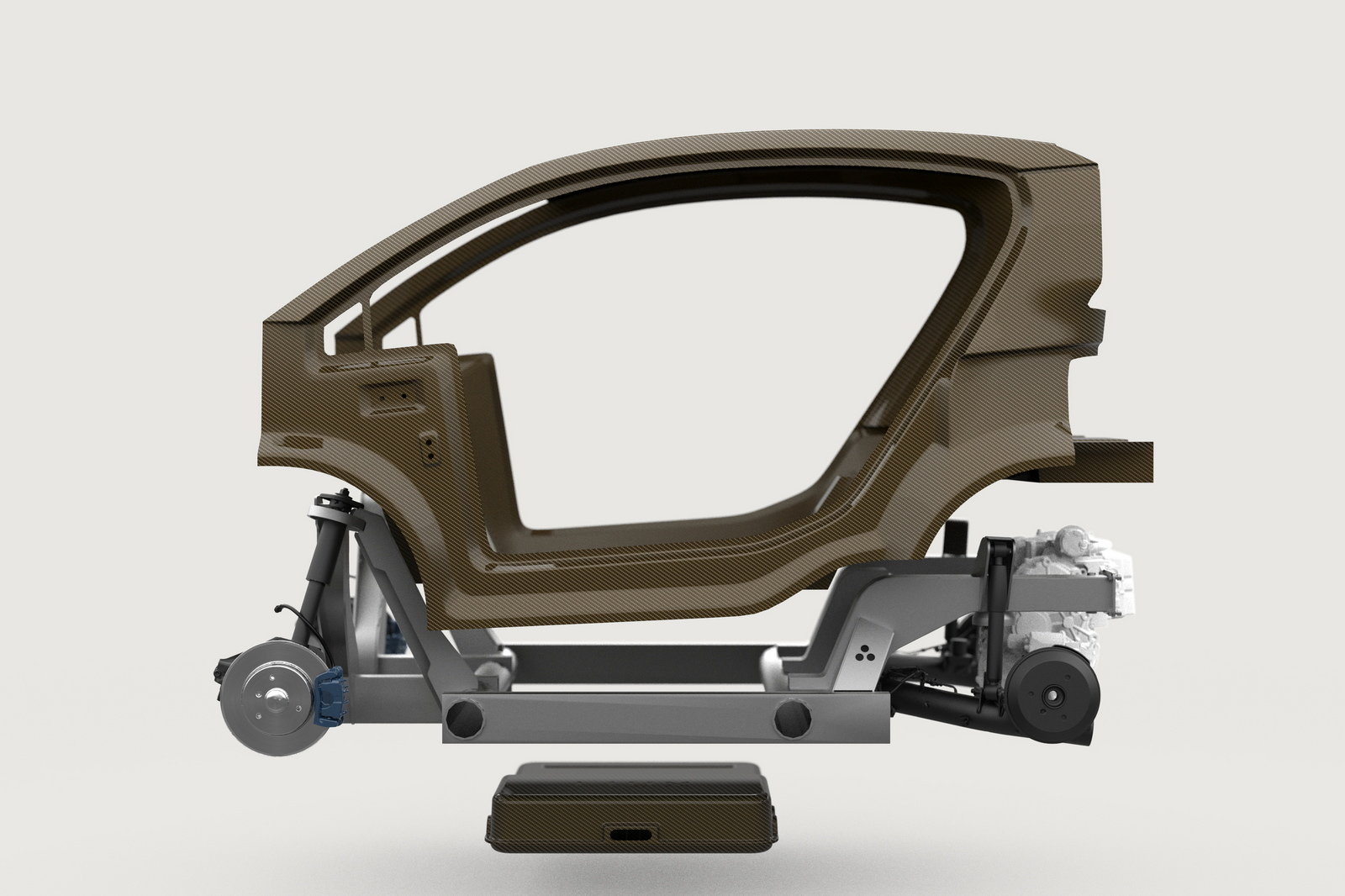 A combinação destes materiais e técnicas de construção permitirá reduzir a pegada de carbono em cerca de 40%, na comparação com um veículo elétrico convencional, ou até 80% face a um SUV médio a gasolina, afirmam os responsáveis pelo desenvolvimento do quadriciclo que pesará cerca de 550 kg, “50% menos do que o veículo urbano líder de mercado”, acrescentam.