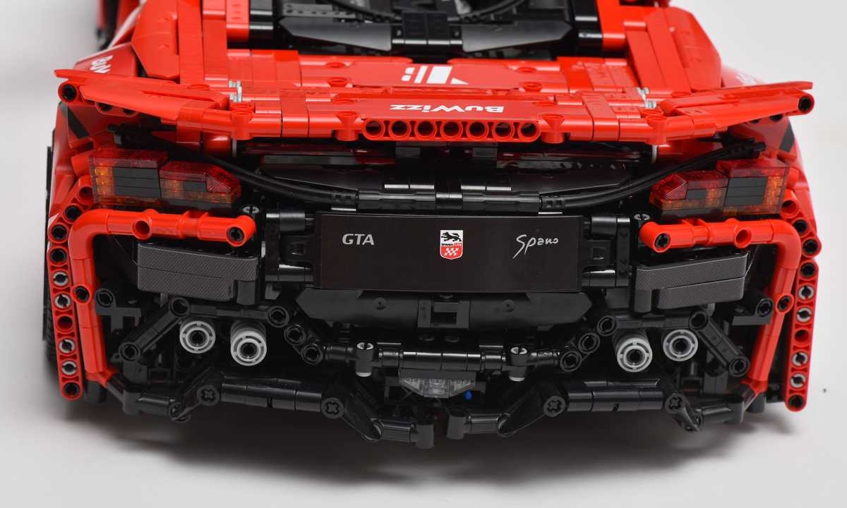 Réplica do exclusivo do GTA Spano construída à escala 1:8 em peças de LEGO atinge 36,5 km/h de velocidade máxima, cortesia de sistema motriz composto por nada menos que 15 motores elétricos; 10 encarregues de mover o veículo e mais cinco que permitem operar a direção, as portas e os travões.