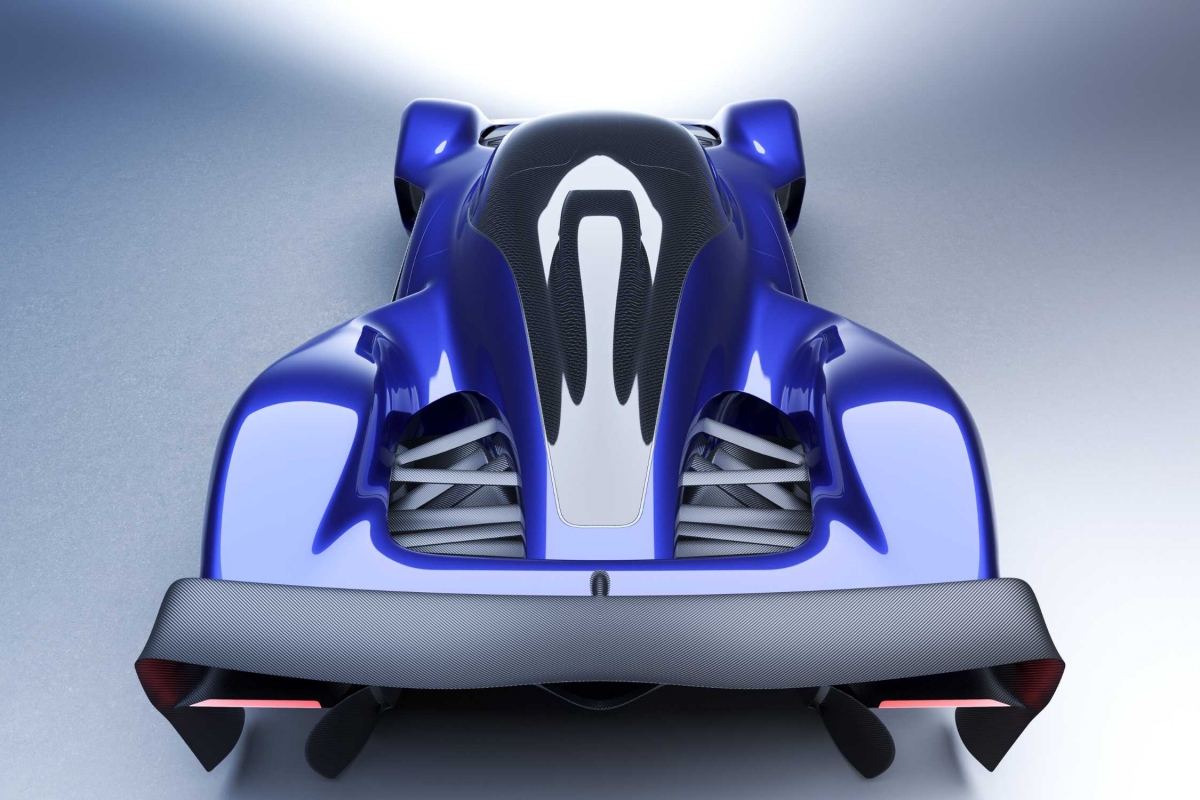 O cockpit com de dois lugares ao estilo de um caça a jato conduz a uma secção do nariz ao estilo da F1 que depois se abre para uma dianteira ao estilo do Le Mans Hypercar e, embora as rodas estejam fechadas como num Hypercar, a suspensão dianteira e traseira com hastes foi deixada aberta aos elementos. Entretanto, a traseira tem uma semelhança impressionante com o Valkyrie, com os volumosos túneis venturi.
