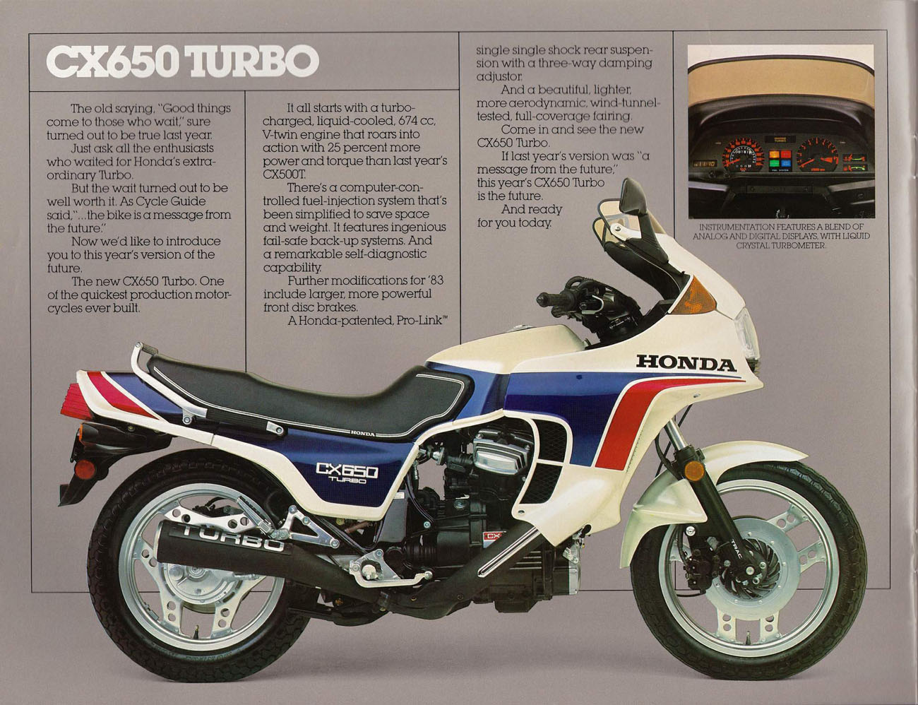 Em 1982 a Honda lança uma nova variante da CX500, agora com a adição de um turbo IHI, designando-a de CX500 Turbo e elevando a potência para os 82cv. Foi a primeira moto Honda com um sistema de injecção de combustível programado e a primeira mota turbo de produção em série. Praticamente todos os componentes diferem de CX500 tradicional, e utiliza um sistema de suspensão traseira Pro-Link e na frente o sistema TRAC, que significa Torque Reactive Anti-dive Control.