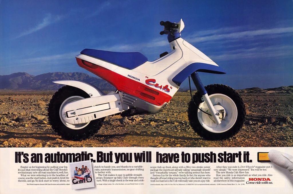 Produzida de 1990 a 1996, a Honda EZ90, também conhecida por Cub EZ90, por pertencer à família das Honda Cub, apresentava um design bastante futurista, coadjuvado com a suspensão traseira de braço oscilante, com o objectivo de atrair clientes mais jovens que gostavam de actividades ao ar livre. O seu mercado de eleição era o americano, apesar de não ser legal para circular na via pública em alguns estados.