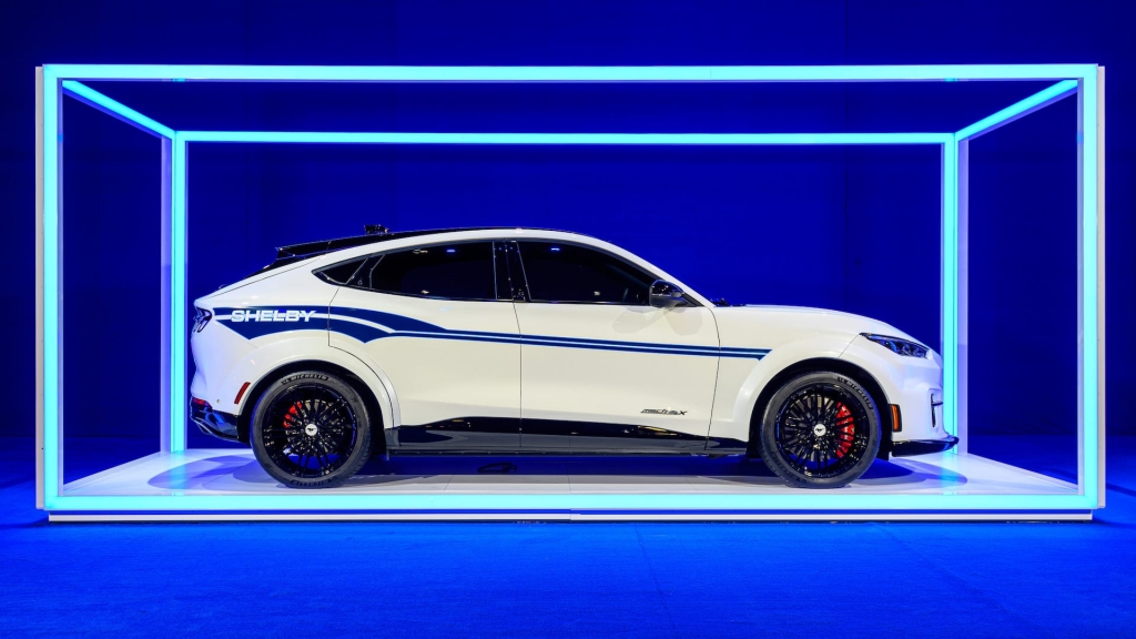 Com base no recém-apresentado Mach-E GT, o protótipo destaca-se por apresentar um kit exclusivo de carroçaria em fibra de carbono, para redução de peso e otimização da aerodinâmica, com elementos aerodinâmicos mais agressivos e uma nova abertura no capô. Na decoração exterior vários elementos da icónica divisão de carros desportivos, incluindo as faixas azuis que atravessam a carroçaria. No habitáculo, o tratamento Shelby está patente em vários pormenores e também nos bancos exclusivos da Recaro.