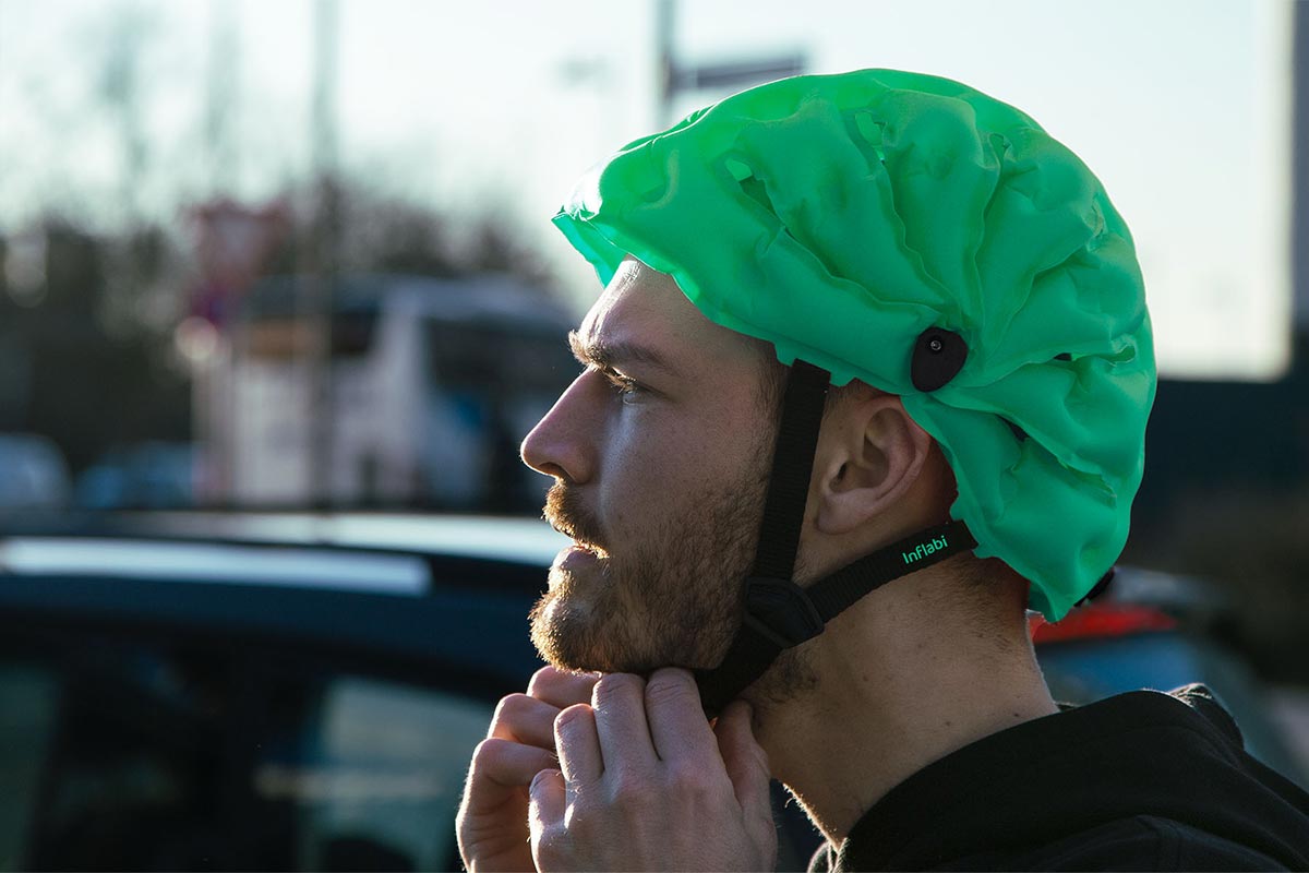Chama-se Inflabi e vem facilitar a vida dos ciclistas urbanos, oferecendo a solução para um problema comum de arrumação. Trata-se de um capacete insuflável, que pode ser guardado num bolso quando está sem ar.