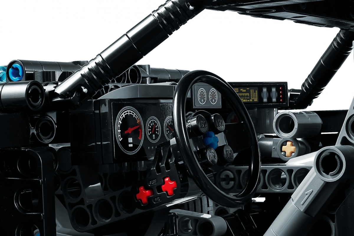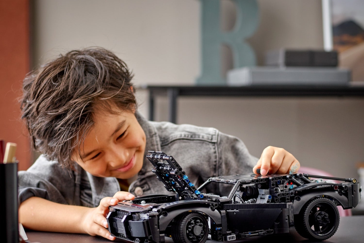 A Lego criou a versão em miniatura com todos os detalhes do carro do novo Batman, um ‘muscle car’ à americana, que corta com o estilo futurista dos últimos veículos da saga, ficando a meio caminho entre o Ford Mustang e um Dodge Charger clássico, com 1360 peças, duas delas iluminadas, na dianteira e na traseira do carro.