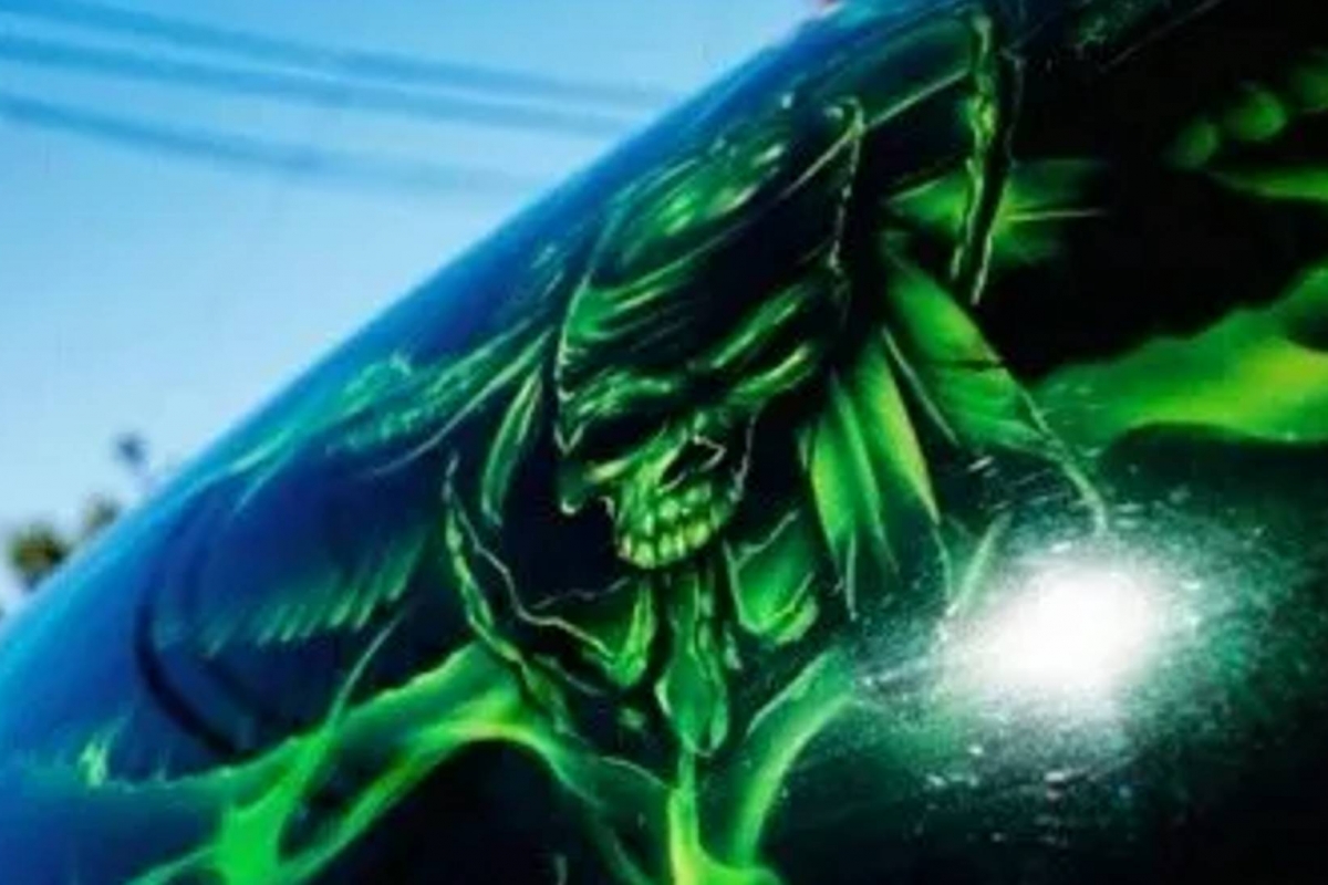 Entre os mais curiosos modelos que integram o espólio da estrela do cinema de 58 anos está um Ford Mercury de 1951 pintado de preto, com labaredas desenhas a verde nas laterais e uma caveira ‘pirata’ pintada na tampa da mala. O modelo foi personalizado por um especialista de Burbank, na Califórnia.