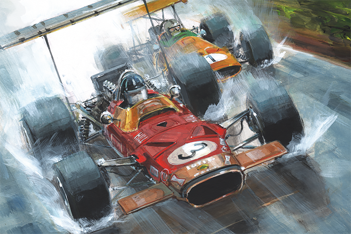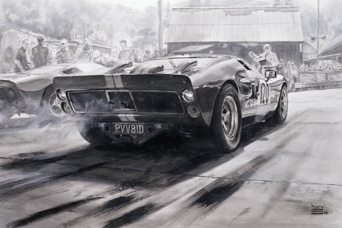 “Sempre adorei o automobilismo”, entusiasma-se Burns. “As minhas pinturas do GCSE apresentava GT40 e eu adoraria fazer uma história em formato de revista gráfica de Le Mans na década de 60”.